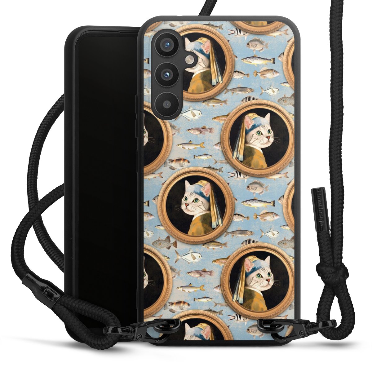 The matt black silicone case is made of flexible TPU (thermoplastic polyurethane) and offers robust protection. The durable, unbreakable material makes the cover flexible and dimensionally stable at the same time. The matte surface makes your design stand out more and is less susceptible to fingerprints and dirt. The stylish trend accessory fits comfortably in the hand and is perfectly complemented by the fabric (polyester) mobile phone strap. The braided fabric strap is approx. 1.70 metres long with a diameter of approx. 0.5 cm. Due to the special knotting technique, the length of the strap can be adjusted by simply pulling it, so that you can adapt it individually to your wishes. The practical case to wear around your neck is available with the fabric strap in black. As a little icing on the cake, we have provided the strap with a chic metal fastener in matt black. The strap is securely fastened to the case with loops made of high-quality genuine leather and press studs. The ends of the fabric strap are covered with metallic end caps and thus protected from fraying.
