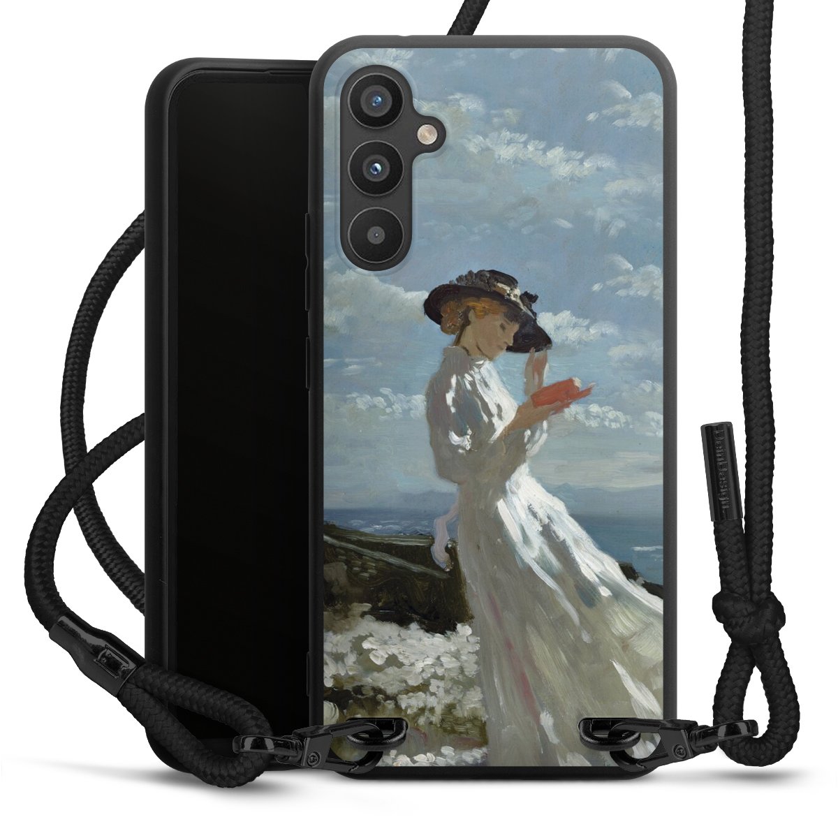The matt black silicone case is made of flexible TPU (thermoplastic polyurethane) and offers robust protection. The durable, unbreakable material makes the cover flexible and dimensionally stable at the same time. The matte surface makes your design stand out more and is less susceptible to fingerprints and dirt. The stylish trend accessory fits comfortably in the hand and is perfectly complemented by the fabric (polyester) mobile phone strap. The braided fabric strap is approx. 1.70 metres long with a diameter of approx. 0.5 cm. Due to the special knotting technique, the length of the strap can be adjusted by simply pulling it, so that you can adapt it individually to your wishes. The practical case to wear around your neck is available with the fabric strap in black. As a little icing on the cake, we have provided the strap with a chic metal fastener in matt black. The strap is securely fastened to the case with loops made of high-quality genuine leather and press studs. The ends of the fabric strap are covered with metallic end caps and thus protected from fraying.