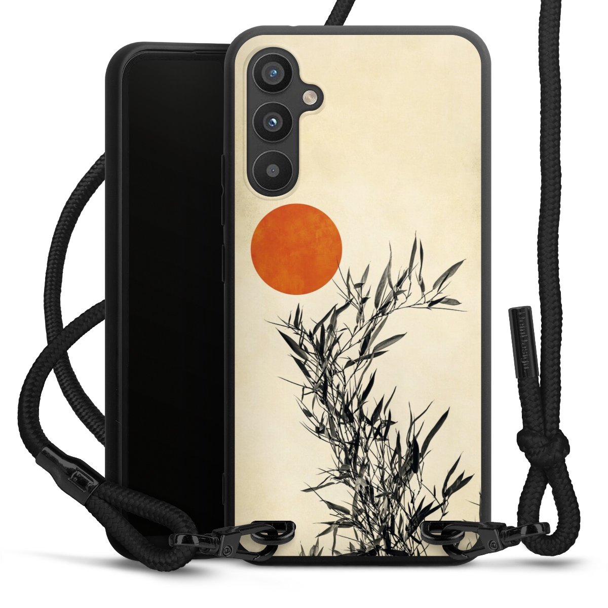 The matt black silicone case is made of flexible TPU (thermoplastic polyurethane) and offers robust protection. The durable, unbreakable material makes the cover flexible and dimensionally stable at the same time. The matte surface makes your design stand out more and is less susceptible to fingerprints and dirt. The stylish trend accessory fits comfortably in the hand and is perfectly complemented by the fabric (polyester) mobile phone strap. The braided fabric strap is approx. 1.70 metres long with a diameter of approx. 0.5 cm. Due to the special knotting technique, the length of the strap can be adjusted by simply pulling it, so that you can adapt it individually to your wishes. The practical case to wear around your neck is available with the fabric strap in black. As a little icing on the cake, we have provided the strap with a chic metal fastener in matt black. The strap is securely fastened to the case with loops made of high-quality genuine leather and press studs. The ends of the fabric strap are covered with metallic end caps and thus protected from fraying.