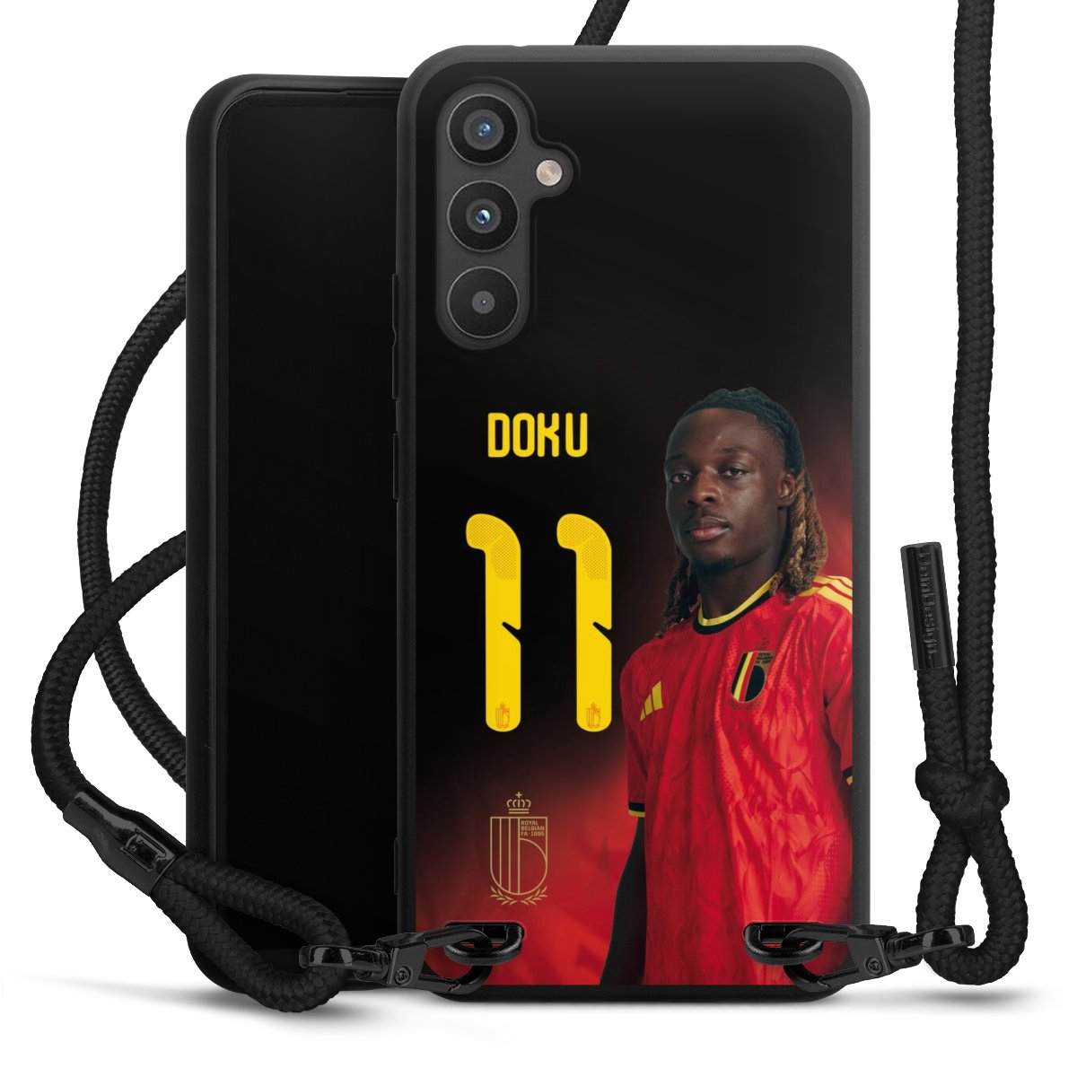 The matt black silicone case is made of flexible TPU (thermoplastic polyurethane) and offers robust protection. The durable, unbreakable material makes the cover flexible and dimensionally stable at the same time. The matte surface makes your design stand out more and is less susceptible to fingerprints and dirt. The stylish trend accessory fits comfortably in the hand and is perfectly complemented by the fabric (polyester) mobile phone strap. The braided fabric strap is approx. 1.70 metres long with a diameter of approx. 0.5 cm. Due to the special knotting technique, the length of the strap can be adjusted by simply pulling it, so that you can adapt it individually to your wishes. The practical case to wear around your neck is available with the fabric strap in black. As a little icing on the cake, we have provided the strap with a chic metal fastener in matt black. The strap is securely fastened to the case with loops made of high-quality genuine leather and press studs. The ends of the fabric strap are covered with metallic end caps and thus protected from fraying.