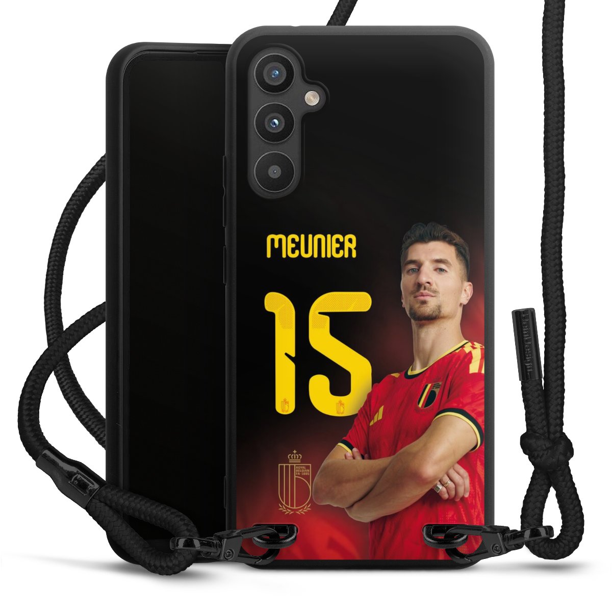 The matt black silicone case is made of flexible TPU (thermoplastic polyurethane) and offers robust protection. The durable, unbreakable material makes the cover flexible and dimensionally stable at the same time. The matte surface makes your design stand out more and is less susceptible to fingerprints and dirt. The stylish trend accessory fits comfortably in the hand and is perfectly complemented by the fabric (polyester) mobile phone strap. The braided fabric strap is approx. 1.70 metres long with a diameter of approx. 0.5 cm. Due to the special knotting technique, the length of the strap can be adjusted by simply pulling it, so that you can adapt it individually to your wishes. The practical case to wear around your neck is available with the fabric strap in black. As a little icing on the cake, we have provided the strap with a chic metal fastener in matt black. The strap is securely fastened to the case with loops made of high-quality genuine leather and press studs. The ends of the fabric strap are covered with metallic end caps and thus protected from fraying.