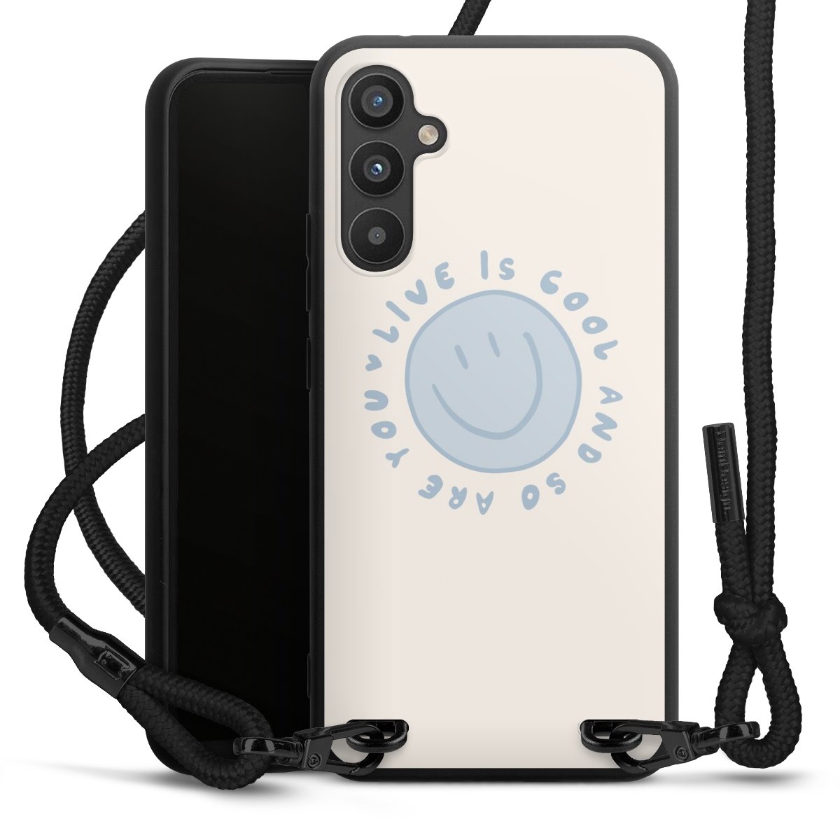 We use the solid direct print process for this phone case, which is why the print area only covers the back and the edge remains unprinted. The case to wear around your neck can be ordered unprinted, fully printed, or partially printed. For your design, either choose one of our exclusive shop motifs or get creative and create your own design, for example with photos and overlays. Design your own personal trend accessory and make an individual statement on the streets!