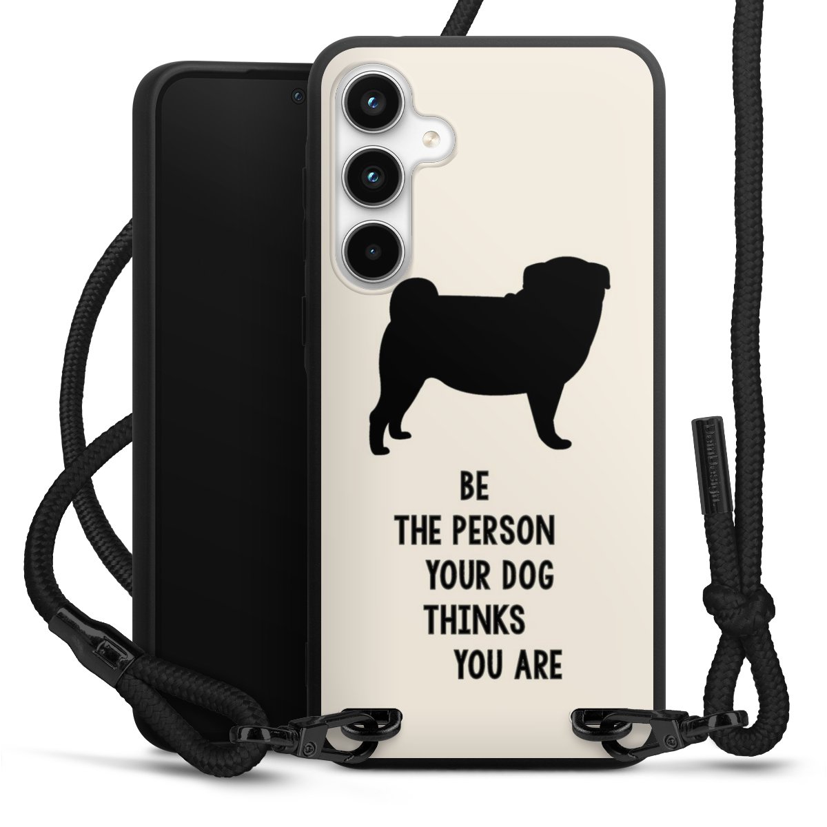 The matt black silicone case is made of flexible TPU (thermoplastic polyurethane) and offers robust protection. The durable, unbreakable material makes the cover flexible and dimensionally stable at the same time. The matte surface makes your design stand out more and is less susceptible to fingerprints and dirt. The stylish trend accessory fits comfortably in the hand and is perfectly complemented by the fabric (polyester) mobile phone strap. The braided fabric strap is approx. 1.70 metres long with a diameter of approx. 0.5 cm. Due to the special knotting technique, the length of the strap can be adjusted by simply pulling it, so that you can adapt it individually to your wishes. The practical case to wear around your neck is available with the fabric strap in black. As a little icing on the cake, we have provided the strap with a chic metal fastener in matt black. The strap is securely fastened to the case with loops made of high-quality genuine leather and press studs. The ends of the fabric strap are covered with metallic end caps and thus protected from fraying.