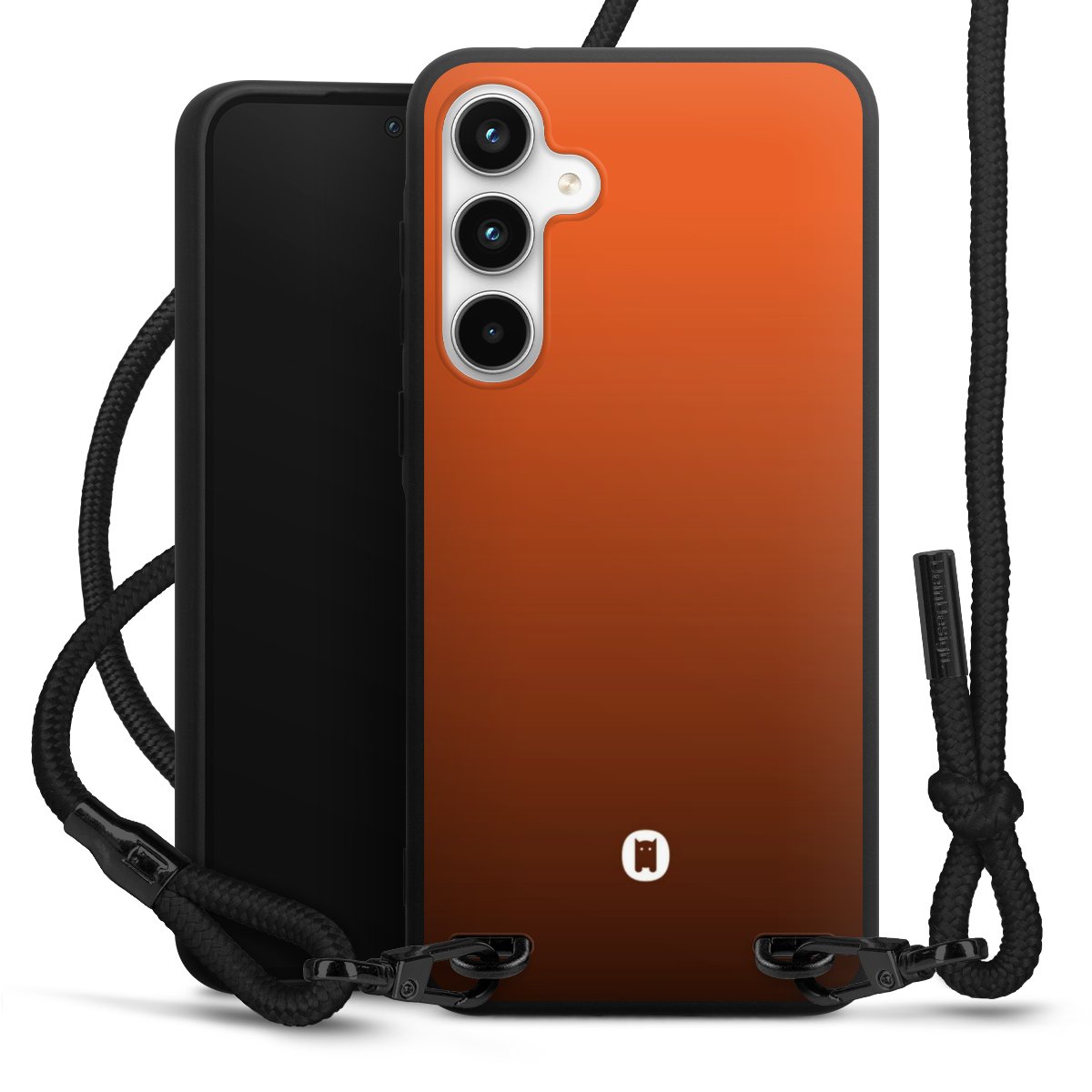 The matt black silicone case is made of flexible TPU (thermoplastic polyurethane) and offers robust protection. The durable, unbreakable material makes the cover flexible and dimensionally stable at the same time. The matte surface makes your design stand out more and is less susceptible to fingerprints and dirt. The stylish trend accessory fits comfortably in the hand and is perfectly complemented by the fabric (polyester) mobile phone strap. The braided fabric strap is approx. 1.70 metres long with a diameter of approx. 0.5 cm. Due to the special knotting technique, the length of the strap can be adjusted by simply pulling it, so that you can adapt it individually to your wishes. The practical case to wear around your neck is available with the fabric strap in black. As a little icing on the cake, we have provided the strap with a chic metal fastener in matt black. The strap is securely fastened to the case with loops made of high-quality genuine leather and press studs. The ends of the fabric strap are covered with metallic end caps and thus protected from fraying.