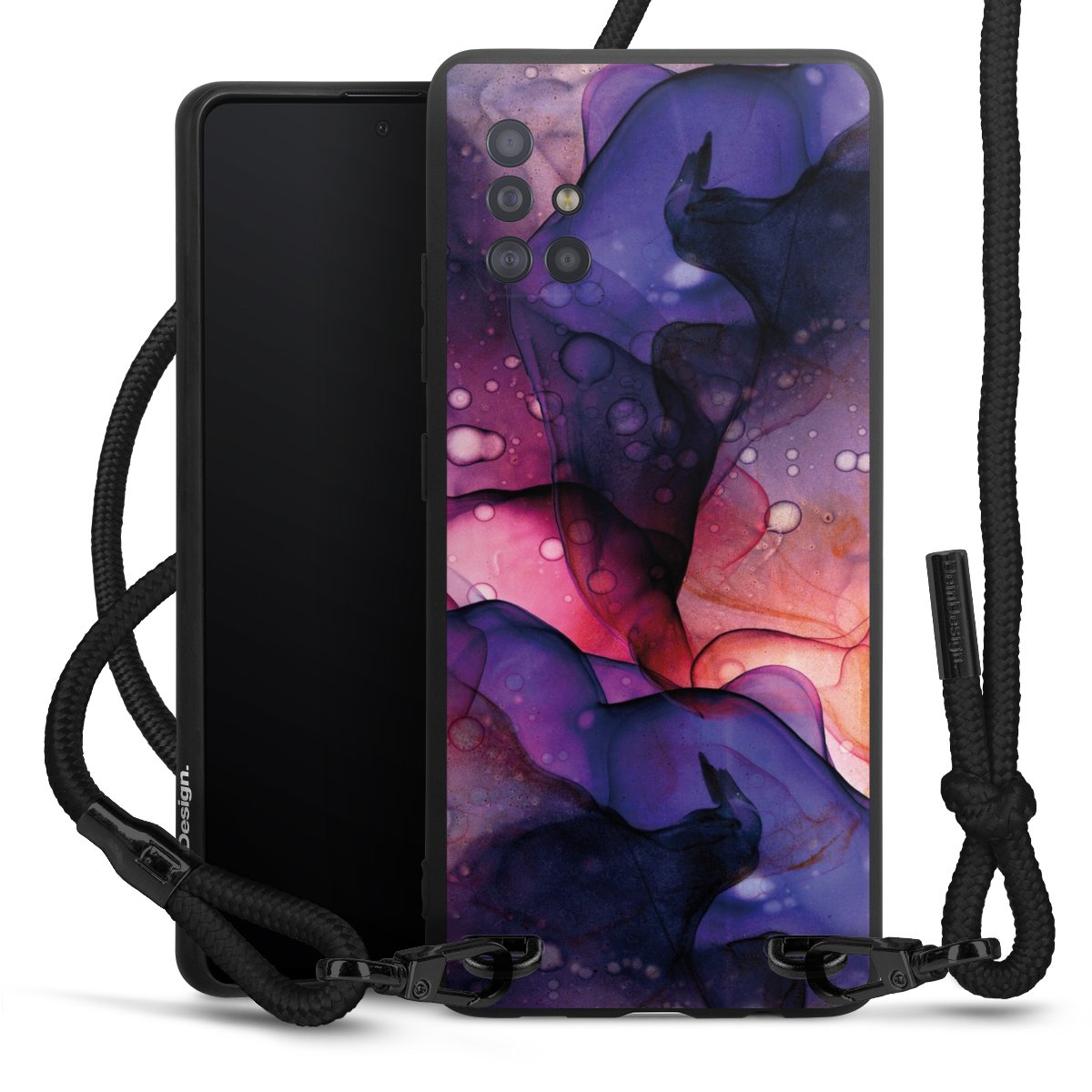 We use the solid direct print process for this phone case, which is why the print area only covers the back and the edge remains unprinted. The case to wear around your neck can be ordered unprinted, fully printed, or partially printed. For your design, either choose one of our exclusive shop motifs or get creative and create your own design, for example with photos and overlays. Design your own personal trend accessory and make an individual statement on the streets!
