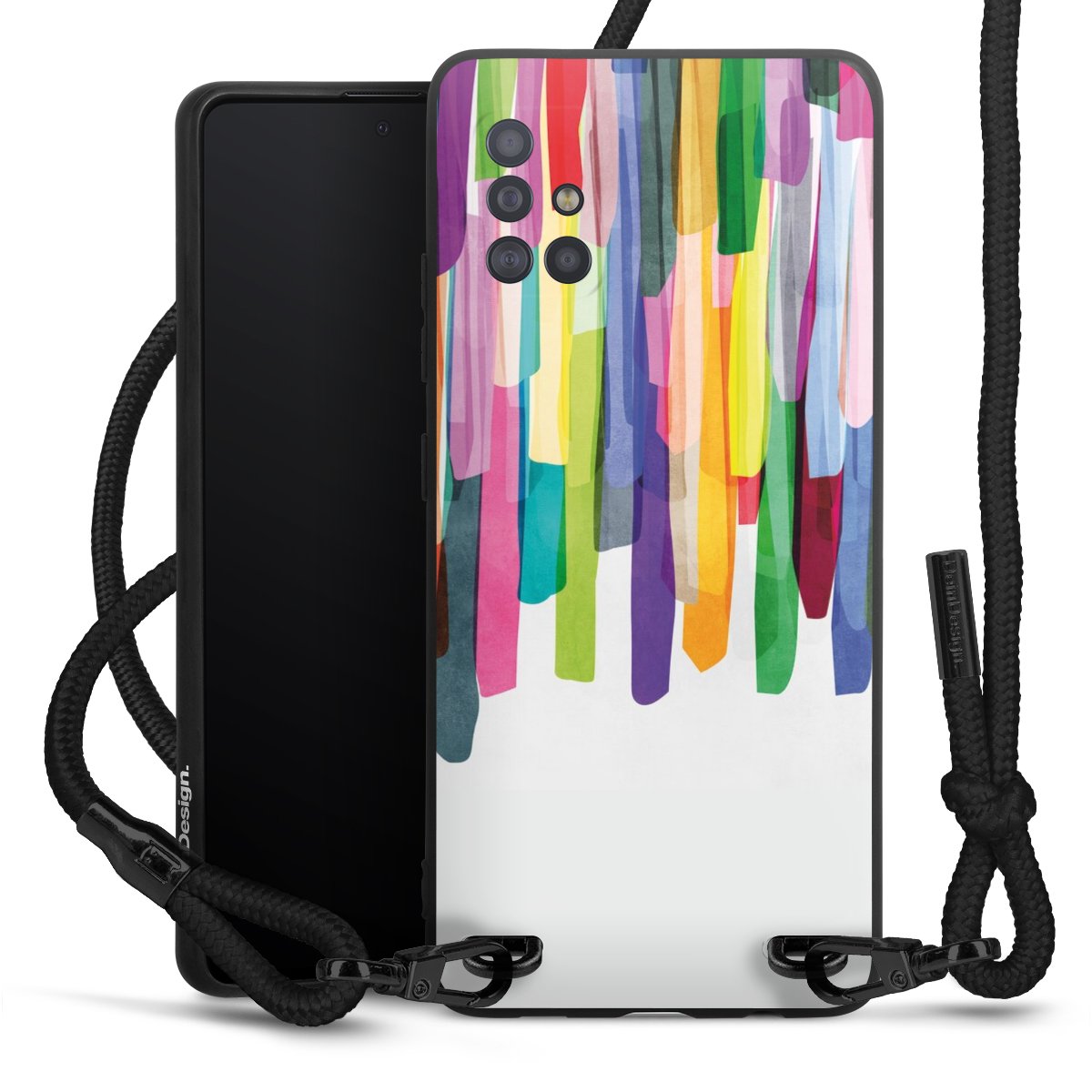 We use the solid direct print process for this phone case, which is why the print area only covers the back and the edge remains unprinted. The case to wear around your neck can be ordered unprinted, fully printed, or partially printed. For your design, either choose one of our exclusive shop motifs or get creative and create your own design, for example with photos and overlays. Design your own personal trend accessory and make an individual statement on the streets!