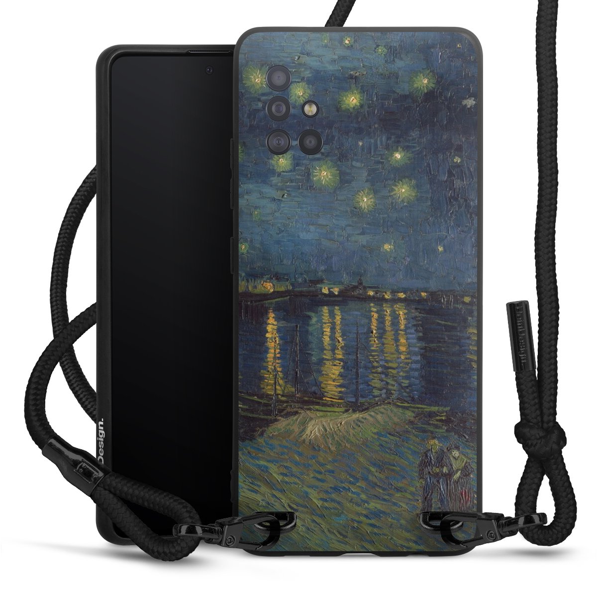 The matt black silicone case is made of flexible TPU (thermoplastic polyurethane) and offers robust protection. The durable, unbreakable material makes the cover flexible and dimensionally stable at the same time. The matte surface makes your design stand out more and is less susceptible to fingerprints and dirt. The stylish trend accessory fits comfortably in the hand and is perfectly complemented by the fabric (polyester) mobile phone strap. The braided fabric strap is approx. 1.70 metres long with a diameter of approx. 0.5 cm. Due to the special knotting technique, the length of the strap can be adjusted by simply pulling it, so that you can adapt it individually to your wishes. The practical case to wear around your neck is available with the fabric strap in black. As a little icing on the cake, we have provided the strap with a chic metal fastener in matt black. The strap is securely fastened to the case with loops made of high-quality genuine leather and press studs. The ends of the fabric strap are covered with metallic end caps and thus protected from fraying.