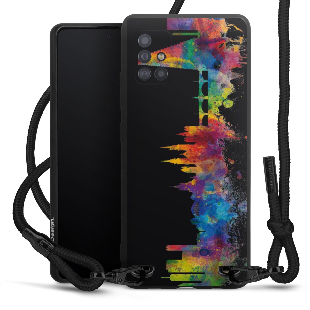 We use the solid direct print process for this phone case, which is why the print area only covers the back and the edge remains unprinted. The case to wear around your neck can be ordered unprinted, fully printed, or partially printed. For your design, either choose one of our exclusive shop motifs or get creative and create your own design, for example with photos and overlays. Design your own personal trend accessory and make an individual statement on the streets!