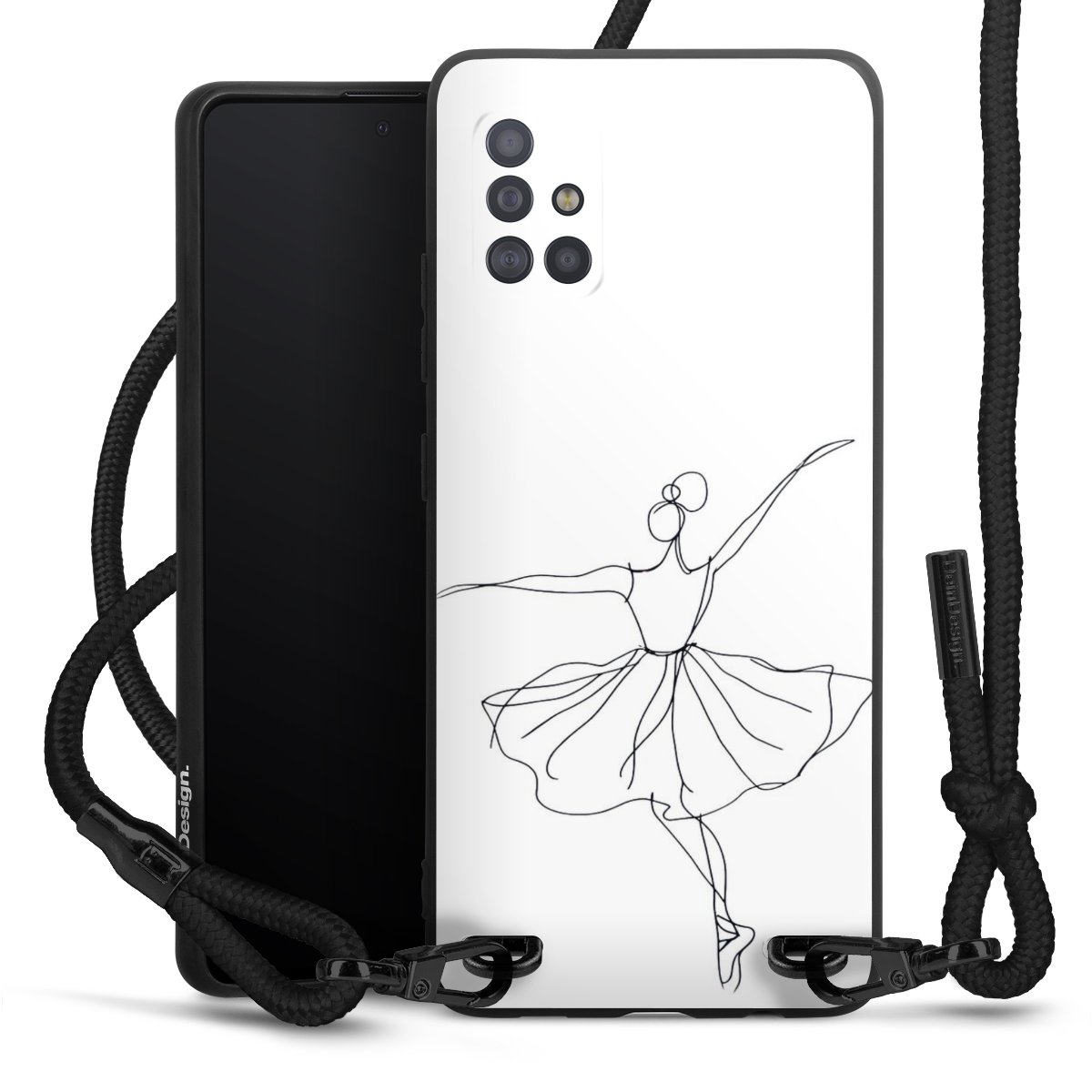 The matt black silicone case is made of flexible TPU (thermoplastic polyurethane) and offers robust protection. The durable, unbreakable material makes the cover flexible and dimensionally stable at the same time. The matte surface makes your design stand out more and is less susceptible to fingerprints and dirt. The stylish trend accessory fits comfortably in the hand and is perfectly complemented by the fabric (polyester) mobile phone strap. The braided fabric strap is approx. 1.70 metres long with a diameter of approx. 0.5 cm. Due to the special knotting technique, the length of the strap can be adjusted by simply pulling it, so that you can adapt it individually to your wishes. The practical case to wear around your neck is available with the fabric strap in black. As a little icing on the cake, we have provided the strap with a chic metal fastener in matt black. The strap is securely fastened to the case with loops made of high-quality genuine leather and press studs. The ends of the fabric strap are covered with metallic end caps and thus protected from fraying.