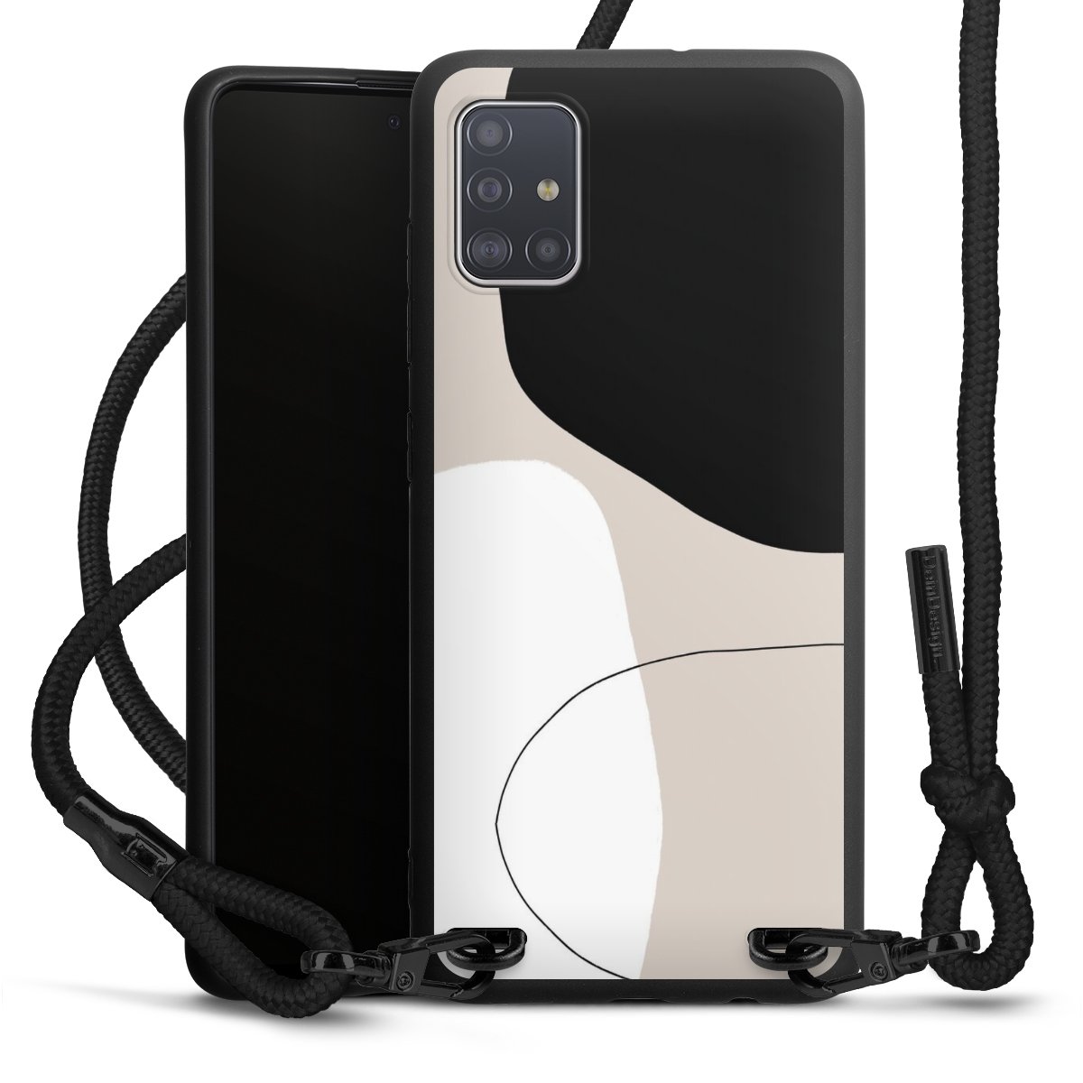 The matt black silicone case is made of flexible TPU (thermoplastic polyurethane) and offers robust protection. The durable, unbreakable material makes the cover flexible and dimensionally stable at the same time. The matte surface makes your design stand out more and is less susceptible to fingerprints and dirt. The stylish trend accessory fits comfortably in the hand and is perfectly complemented by the fabric (polyester) mobile phone strap. The braided fabric strap is approx. 1.70 metres long with a diameter of approx. 0.5 cm. Due to the special knotting technique, the length of the strap can be adjusted by simply pulling it, so that you can adapt it individually to your wishes. The practical case to wear around your neck is available with the fabric strap in black. As a little icing on the cake, we have provided the strap with a chic metal fastener in matt black. The strap is securely fastened to the case with loops made of high-quality genuine leather and press studs. The ends of the fabric strap are covered with metallic end caps and thus protected from fraying.