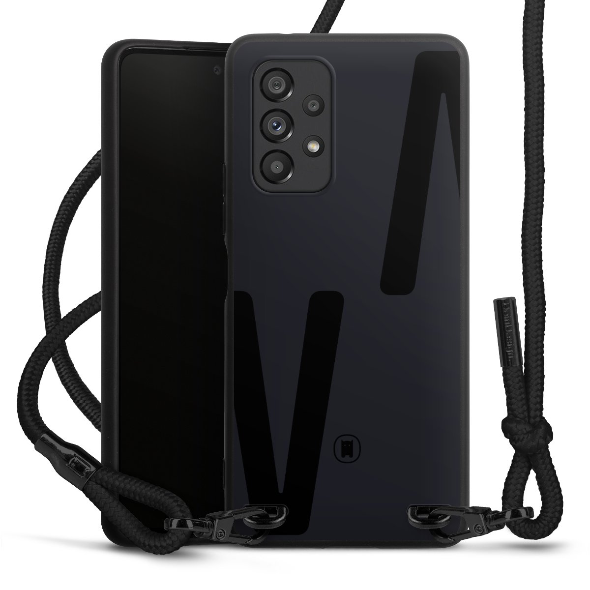 The matt black silicone case is made of flexible TPU (thermoplastic polyurethane) and offers robust protection. The durable, unbreakable material makes the cover flexible and dimensionally stable at the same time. The matte surface makes your design stand out more and is less susceptible to fingerprints and dirt. The stylish trend accessory fits comfortably in the hand and is perfectly complemented by the fabric (polyester) mobile phone strap. The braided fabric strap is approx. 1.70 metres long with a diameter of approx. 0.5 cm. Due to the special knotting technique, the length of the strap can be adjusted by simply pulling it, so that you can adapt it individually to your wishes. The practical case to wear around your neck is available with the fabric strap in black. As a little icing on the cake, we have provided the strap with a chic metal fastener in matt black. The strap is securely fastened to the case with loops made of high-quality genuine leather and press studs. The ends of the fabric strap are covered with metallic end caps and thus protected from fraying.