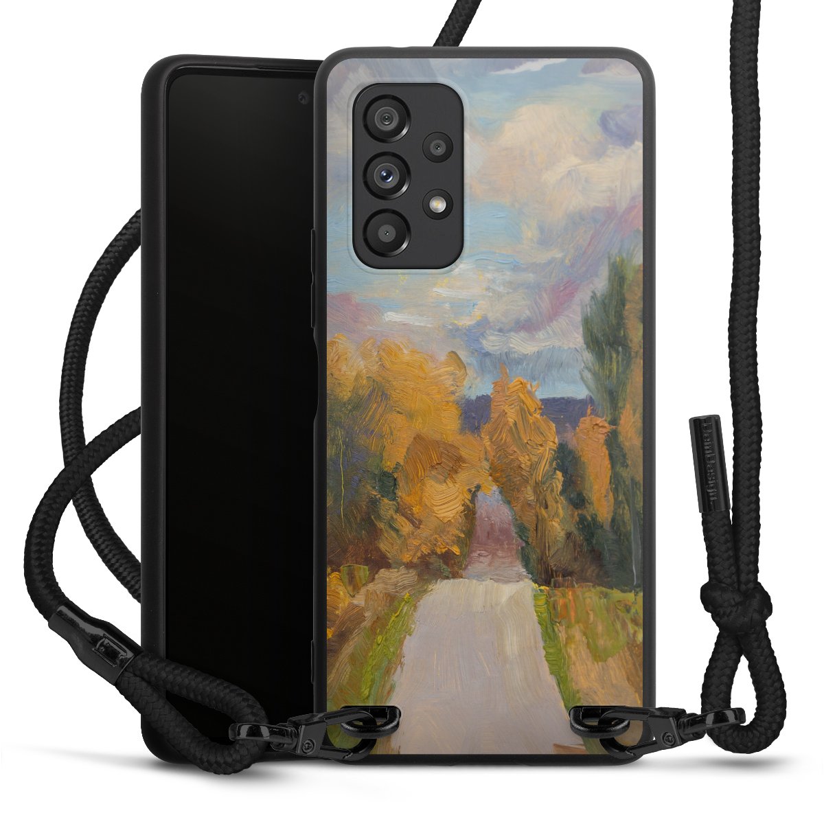 We use the solid direct print process for this phone case, which is why the print area only covers the back and the edge remains unprinted. The case to wear around your neck can be ordered unprinted, fully printed, or partially printed. For your design, either choose one of our exclusive shop motifs or get creative and create your own design, for example with photos and overlays. Design your own personal trend accessory and make an individual statement on the streets!