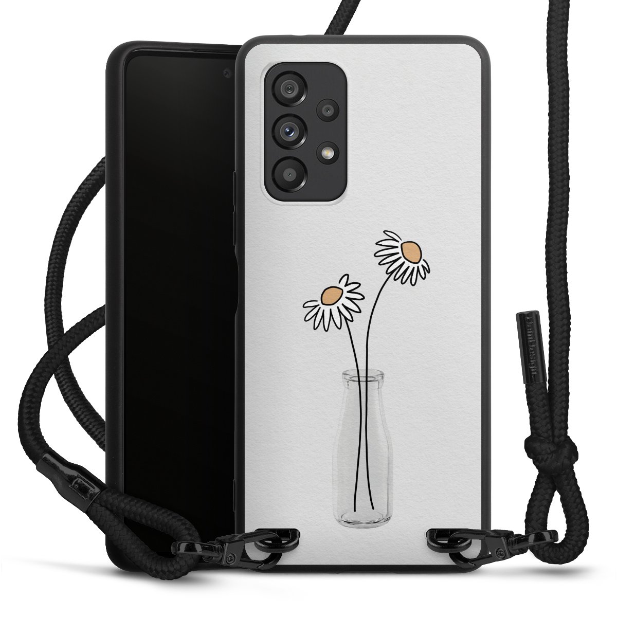 The matt black silicone case is made of flexible TPU (thermoplastic polyurethane) and offers robust protection. The durable, unbreakable material makes the cover flexible and dimensionally stable at the same time. The matte surface makes your design stand out more and is less susceptible to fingerprints and dirt. The stylish trend accessory fits comfortably in the hand and is perfectly complemented by the fabric (polyester) mobile phone strap. The braided fabric strap is approx. 1.70 metres long with a diameter of approx. 0.5 cm. Due to the special knotting technique, the length of the strap can be adjusted by simply pulling it, so that you can adapt it individually to your wishes. The practical case to wear around your neck is available with the fabric strap in black. As a little icing on the cake, we have provided the strap with a chic metal fastener in matt black. The strap is securely fastened to the case with loops made of high-quality genuine leather and press studs. The ends of the fabric strap are covered with metallic end caps and thus protected from fraying.