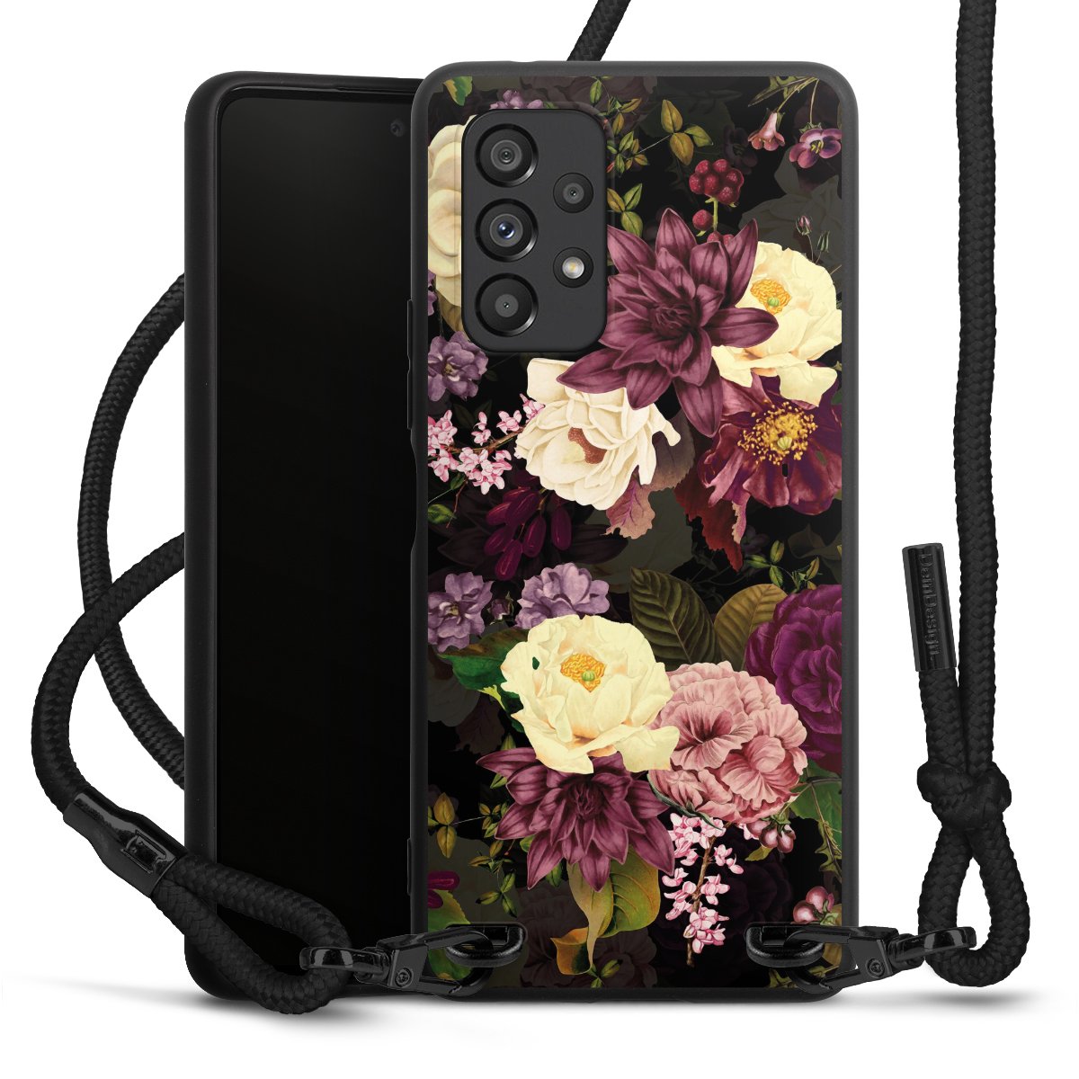 The matt black silicone case is made of flexible TPU (thermoplastic polyurethane) and offers robust protection. The durable, unbreakable material makes the cover flexible and dimensionally stable at the same time. The matte surface makes your design stand out more and is less susceptible to fingerprints and dirt. The stylish trend accessory fits comfortably in the hand and is perfectly complemented by the fabric (polyester) mobile phone strap. The braided fabric strap is approx. 1.70 metres long with a diameter of approx. 0.5 cm. Due to the special knotting technique, the length of the strap can be adjusted by simply pulling it, so that you can adapt it individually to your wishes. The practical case to wear around your neck is available with the fabric strap in black. As a little icing on the cake, we have provided the strap with a chic metal fastener in matt black. The strap is securely fastened to the case with loops made of high-quality genuine leather and press studs. The ends of the fabric strap are covered with metallic end caps and thus protected from fraying.