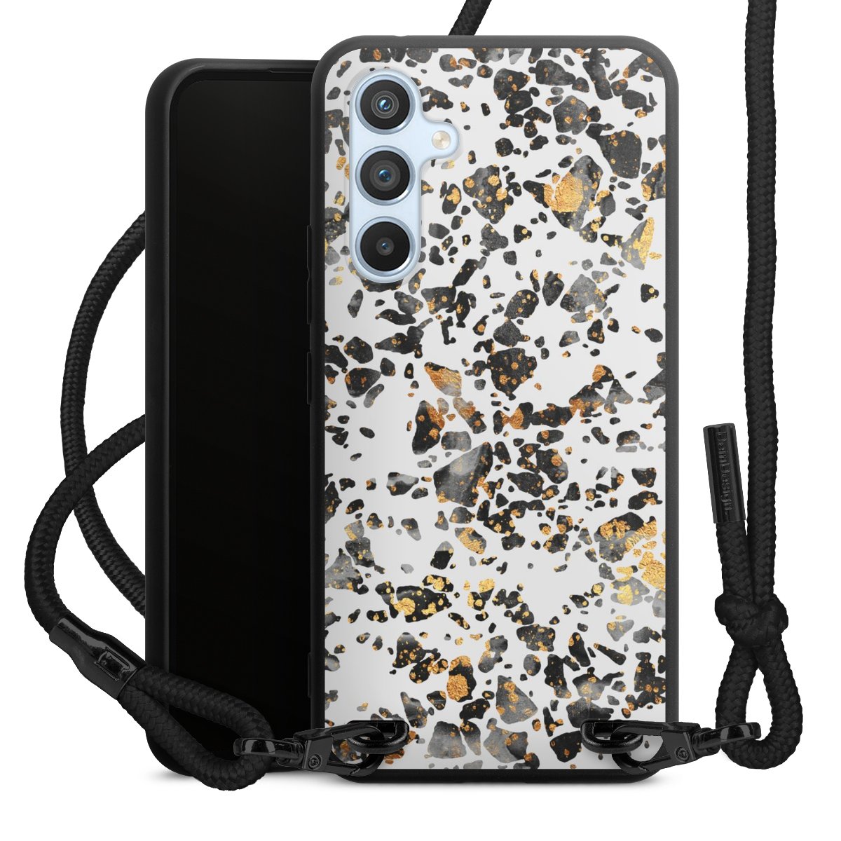 Pure Black: Phone case, fabric strap and metal details in stylish matt black.