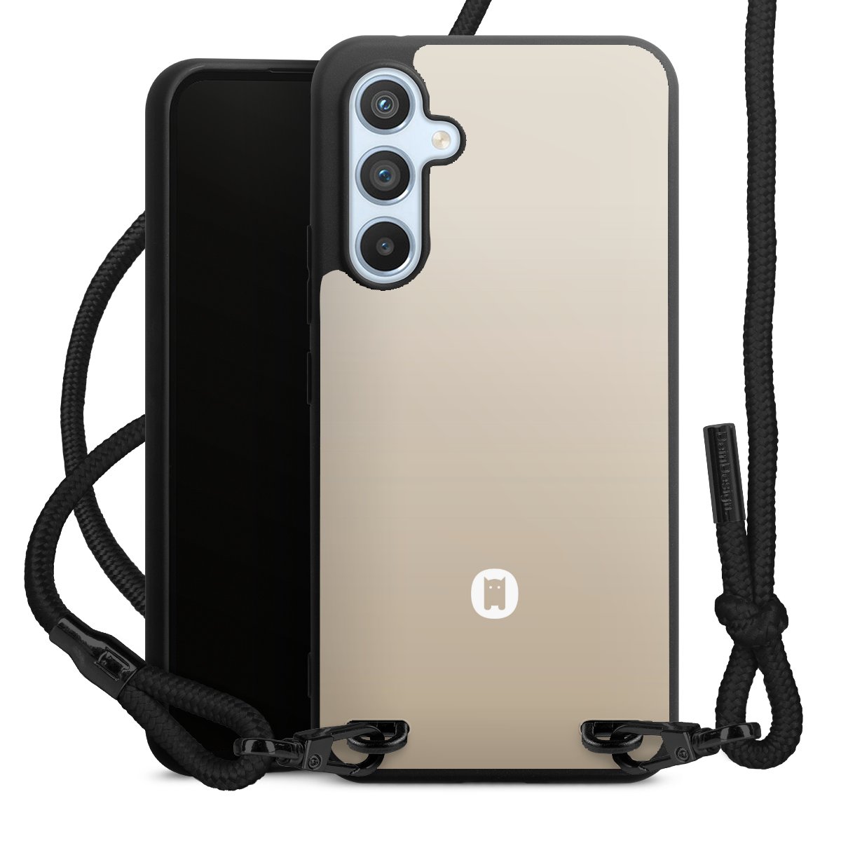 The matt black silicone case is made of flexible TPU (thermoplastic polyurethane) and offers robust protection. The durable, unbreakable material makes the cover flexible and dimensionally stable at the same time. The matte surface makes your design stand out more and is less susceptible to fingerprints and dirt. The stylish trend accessory fits comfortably in the hand and is perfectly complemented by the fabric (polyester) mobile phone strap. The braided fabric strap is approx. 1.70 metres long with a diameter of approx. 0.5 cm. Due to the special knotting technique, the length of the strap can be adjusted by simply pulling it, so that you can adapt it individually to your wishes. The practical case to wear around your neck is available with the fabric strap in black. As a little icing on the cake, we have provided the strap with a chic metal fastener in matt black. The strap is securely fastened to the case with loops made of high-quality genuine leather and press studs. The ends of the fabric strap are covered with metallic end caps and thus protected from fraying.