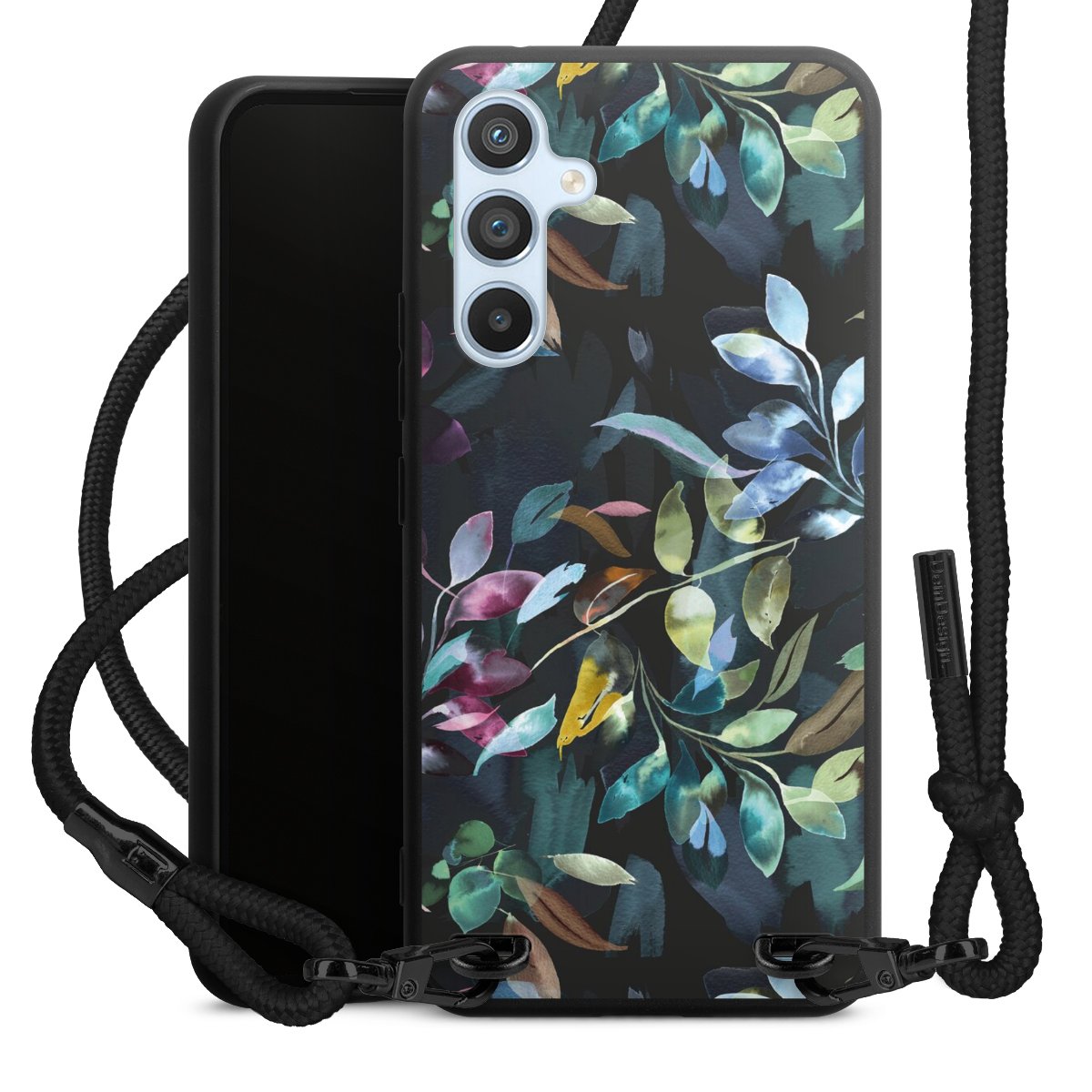 The matt black silicone case is made of flexible TPU (thermoplastic polyurethane) and offers robust protection. The durable, unbreakable material makes the cover flexible and dimensionally stable at the same time. The matte surface makes your design stand out more and is less susceptible to fingerprints and dirt. The stylish trend accessory fits comfortably in the hand and is perfectly complemented by the fabric (polyester) mobile phone strap. The braided fabric strap is approx. 1.70 metres long with a diameter of approx. 0.5 cm. Due to the special knotting technique, the length of the strap can be adjusted by simply pulling it, so that you can adapt it individually to your wishes. The practical case to wear around your neck is available with the fabric strap in black. As a little icing on the cake, we have provided the strap with a chic metal fastener in matt black. The strap is securely fastened to the case with loops made of high-quality genuine leather and press studs. The ends of the fabric strap are covered with metallic end caps and thus protected from fraying.