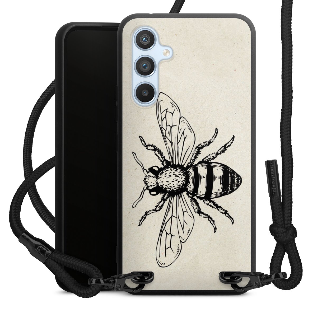The matt black silicone case is made of flexible TPU (thermoplastic polyurethane) and offers robust protection. The durable, unbreakable material makes the cover flexible and dimensionally stable at the same time. The matte surface makes your design stand out more and is less susceptible to fingerprints and dirt. The stylish trend accessory fits comfortably in the hand and is perfectly complemented by the fabric (polyester) mobile phone strap. The braided fabric strap is approx. 1.70 metres long with a diameter of approx. 0.5 cm. Due to the special knotting technique, the length of the strap can be adjusted by simply pulling it, so that you can adapt it individually to your wishes. The practical case to wear around your neck is available with the fabric strap in black. As a little icing on the cake, we have provided the strap with a chic metal fastener in matt black. The strap is securely fastened to the case with loops made of high-quality genuine leather and press studs. The ends of the fabric strap are covered with metallic end caps and thus protected from fraying.