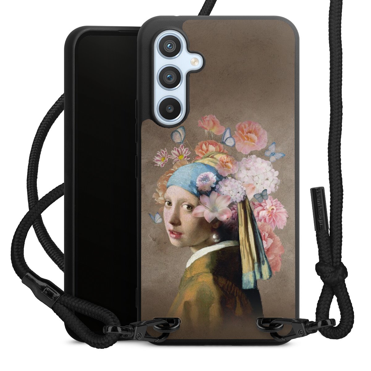 The matt black silicone case is made of flexible TPU (thermoplastic polyurethane) and offers robust protection. The durable, unbreakable material makes the cover flexible and dimensionally stable at the same time. The matte surface makes your design stand out more and is less susceptible to fingerprints and dirt. The stylish trend accessory fits comfortably in the hand and is perfectly complemented by the fabric (polyester) mobile phone strap. The braided fabric strap is approx. 1.70 metres long with a diameter of approx. 0.5 cm. Due to the special knotting technique, the length of the strap can be adjusted by simply pulling it, so that you can adapt it individually to your wishes. The practical case to wear around your neck is available with the fabric strap in black. As a little icing on the cake, we have provided the strap with a chic metal fastener in matt black. The strap is securely fastened to the case with loops made of high-quality genuine leather and press studs. The ends of the fabric strap are covered with metallic end caps and thus protected from fraying.