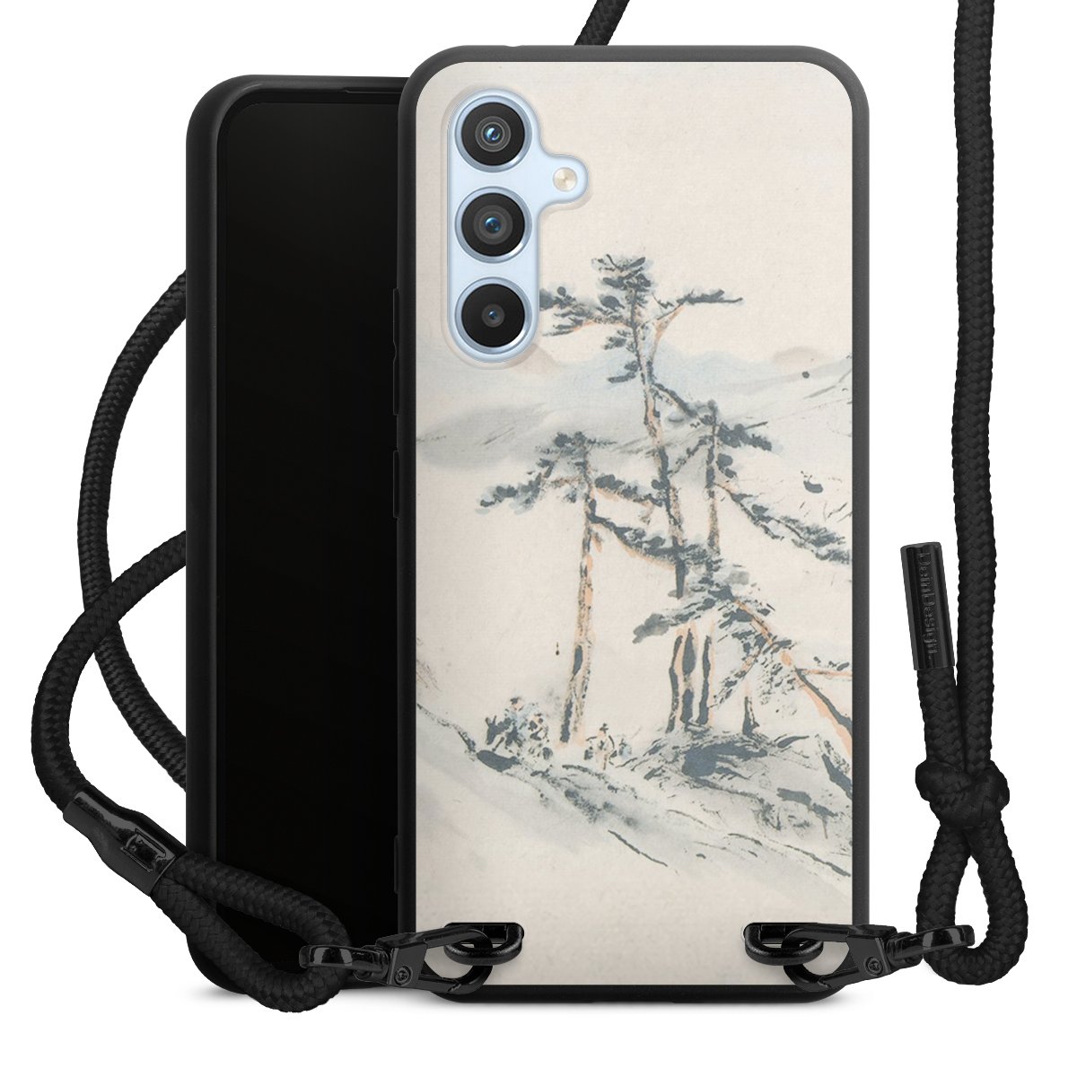 The matt black silicone case is made of flexible TPU (thermoplastic polyurethane) and offers robust protection. The durable, unbreakable material makes the cover flexible and dimensionally stable at the same time. The matte surface makes your design stand out more and is less susceptible to fingerprints and dirt. The stylish trend accessory fits comfortably in the hand and is perfectly complemented by the fabric (polyester) mobile phone strap. The braided fabric strap is approx. 1.70 metres long with a diameter of approx. 0.5 cm. Due to the special knotting technique, the length of the strap can be adjusted by simply pulling it, so that you can adapt it individually to your wishes. The practical case to wear around your neck is available with the fabric strap in black. As a little icing on the cake, we have provided the strap with a chic metal fastener in matt black. The strap is securely fastened to the case with loops made of high-quality genuine leather and press studs. The ends of the fabric strap are covered with metallic end caps and thus protected from fraying.