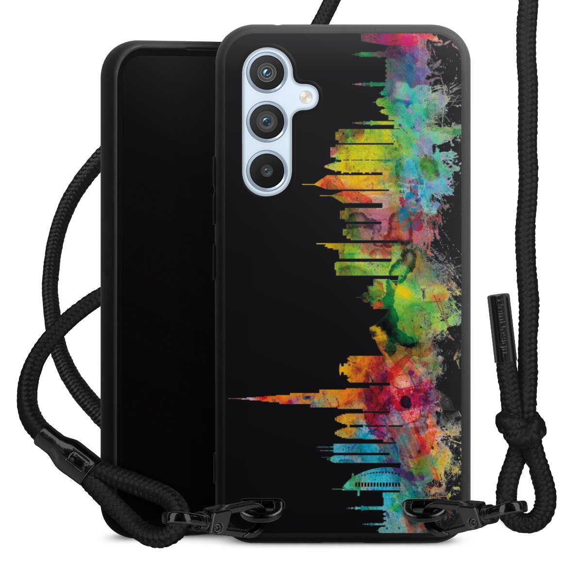 We use the solid direct print process for this phone case, which is why the print area only covers the back and the edge remains unprinted. The case to wear around your neck can be ordered unprinted, fully printed, or partially printed. For your design, either choose one of our exclusive shop motifs or get creative and create your own design, for example with photos and overlays. Design your own personal trend accessory and make an individual statement on the streets!
