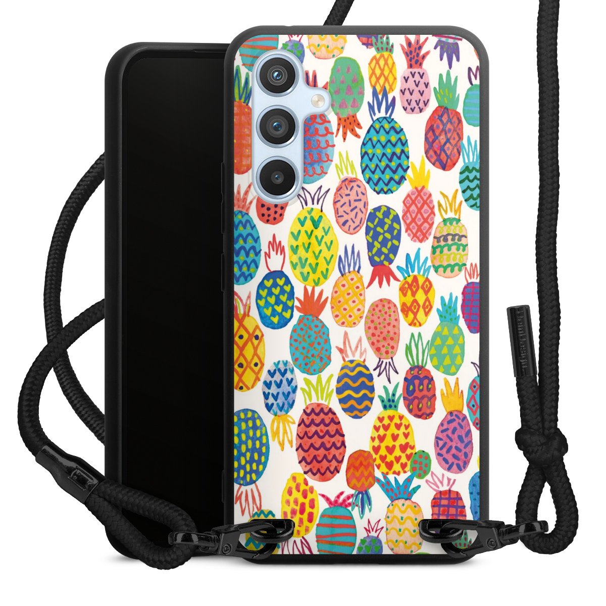 We use the solid direct print process for this phone case, which is why the print area only covers the back and the edge remains unprinted. The case to wear around your neck can be ordered unprinted, fully printed, or partially printed. For your design, either choose one of our exclusive shop motifs or get creative and create your own design, for example with photos and overlays. Design your own personal trend accessory and make an individual statement on the streets!