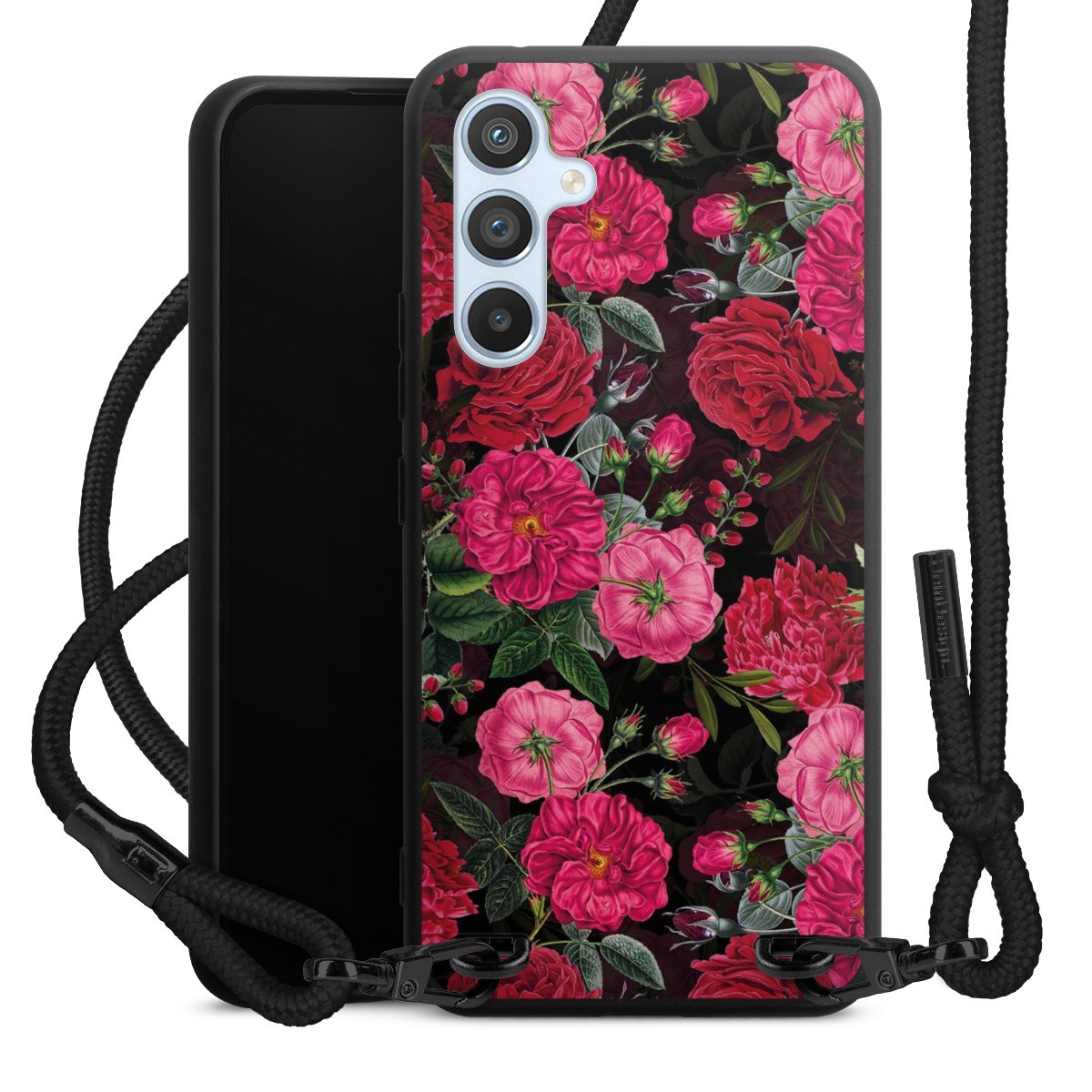The matt black silicone case is made of flexible TPU (thermoplastic polyurethane) and offers robust protection. The durable, unbreakable material makes the cover flexible and dimensionally stable at the same time. The matte surface makes your design stand out more and is less susceptible to fingerprints and dirt. The stylish trend accessory fits comfortably in the hand and is perfectly complemented by the fabric (polyester) mobile phone strap. The braided fabric strap is approx. 1.70 metres long with a diameter of approx. 0.5 cm. Due to the special knotting technique, the length of the strap can be adjusted by simply pulling it, so that you can adapt it individually to your wishes. The practical case to wear around your neck is available with the fabric strap in black. As a little icing on the cake, we have provided the strap with a chic metal fastener in matt black. The strap is securely fastened to the case with loops made of high-quality genuine leather and press studs. The ends of the fabric strap are covered with metallic end caps and thus protected from fraying.