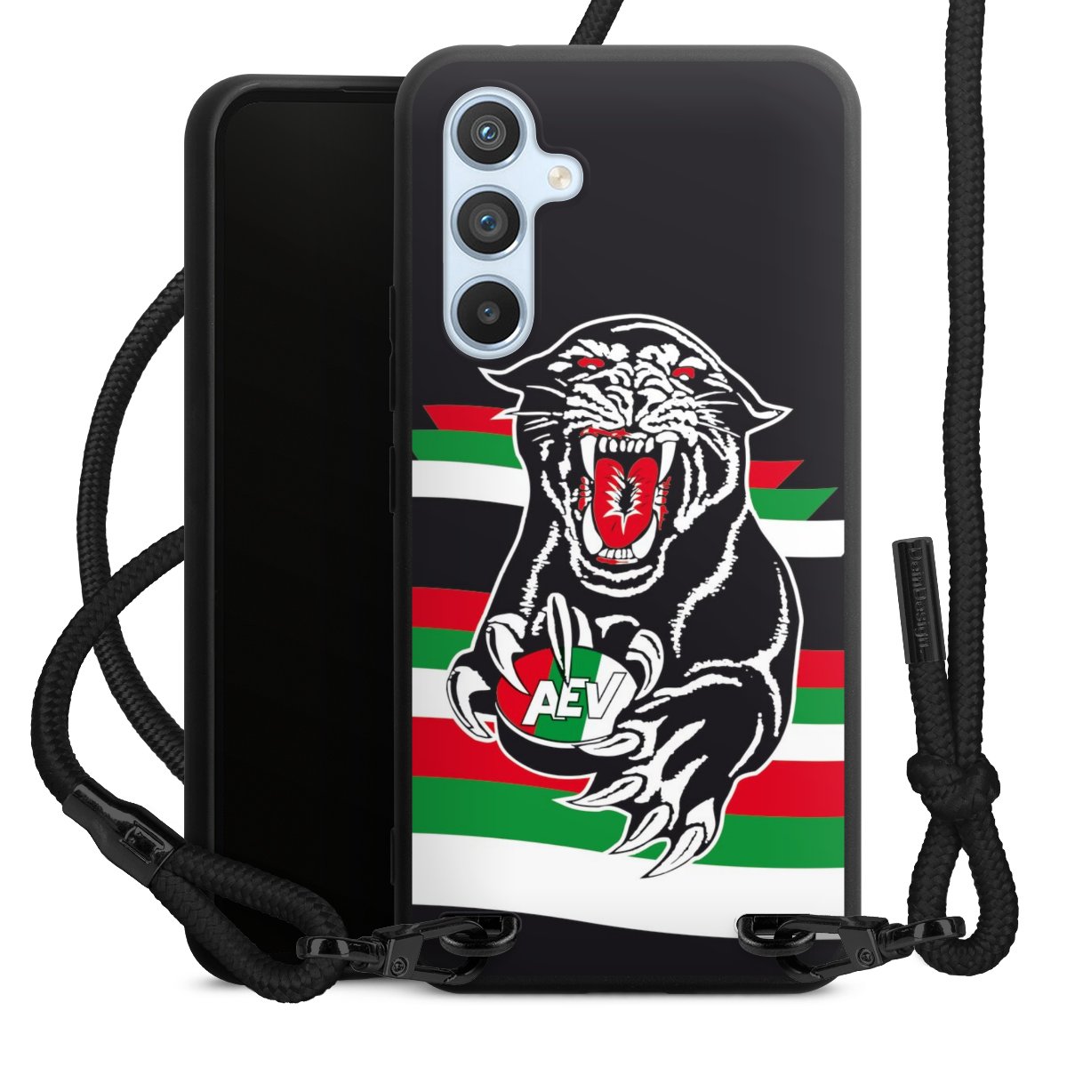 The matt black silicone case is made of flexible TPU (thermoplastic polyurethane) and offers robust protection. The durable, unbreakable material makes the cover flexible and dimensionally stable at the same time. The matte surface makes your design stand out more and is less susceptible to fingerprints and dirt. The stylish trend accessory fits comfortably in the hand and is perfectly complemented by the fabric (polyester) mobile phone strap. The braided fabric strap is approx. 1.70 metres long with a diameter of approx. 0.5 cm. Due to the special knotting technique, the length of the strap can be adjusted by simply pulling it, so that you can adapt it individually to your wishes. The practical case to wear around your neck is available with the fabric strap in black. As a little icing on the cake, we have provided the strap with a chic metal fastener in matt black. The strap is securely fastened to the case with loops made of high-quality genuine leather and press studs. The ends of the fabric strap are covered with metallic end caps and thus protected from fraying.