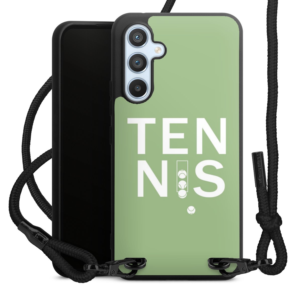 The matt black silicone case is made of flexible TPU (thermoplastic polyurethane) and offers robust protection. The durable, unbreakable material makes the cover flexible and dimensionally stable at the same time. The matte surface makes your design stand out more and is less susceptible to fingerprints and dirt. The stylish trend accessory fits comfortably in the hand and is perfectly complemented by the fabric (polyester) mobile phone strap. The braided fabric strap is approx. 1.70 metres long with a diameter of approx. 0.5 cm. Due to the special knotting technique, the length of the strap can be adjusted by simply pulling it, so that you can adapt it individually to your wishes. The practical case to wear around your neck is available with the fabric strap in black. As a little icing on the cake, we have provided the strap with a chic metal fastener in matt black. The strap is securely fastened to the case with loops made of high-quality genuine leather and press studs. The ends of the fabric strap are covered with metallic end caps and thus protected from fraying.