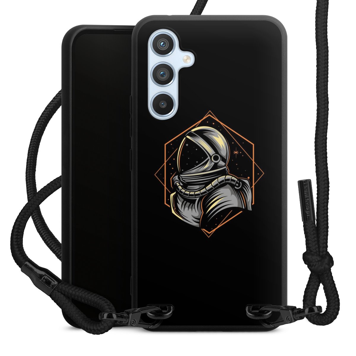 The matt black silicone case is made of flexible TPU (thermoplastic polyurethane) and offers robust protection. The durable, unbreakable material makes the cover flexible and dimensionally stable at the same time. The matte surface makes your design stand out more and is less susceptible to fingerprints and dirt. The stylish trend accessory fits comfortably in the hand and is perfectly complemented by the fabric (polyester) mobile phone strap. The braided fabric strap is approx. 1.70 metres long with a diameter of approx. 0.5 cm. Due to the special knotting technique, the length of the strap can be adjusted by simply pulling it, so that you can adapt it individually to your wishes. The practical case to wear around your neck is available with the fabric strap in black. As a little icing on the cake, we have provided the strap with a chic metal fastener in matt black. The strap is securely fastened to the case with loops made of high-quality genuine leather and press studs. The ends of the fabric strap are covered with metallic end caps and thus protected from fraying.