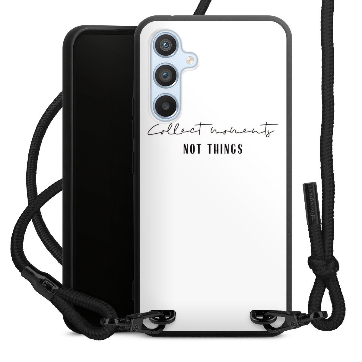 Pure Black: Phone case, fabric strap and metal details in stylish matt black.
