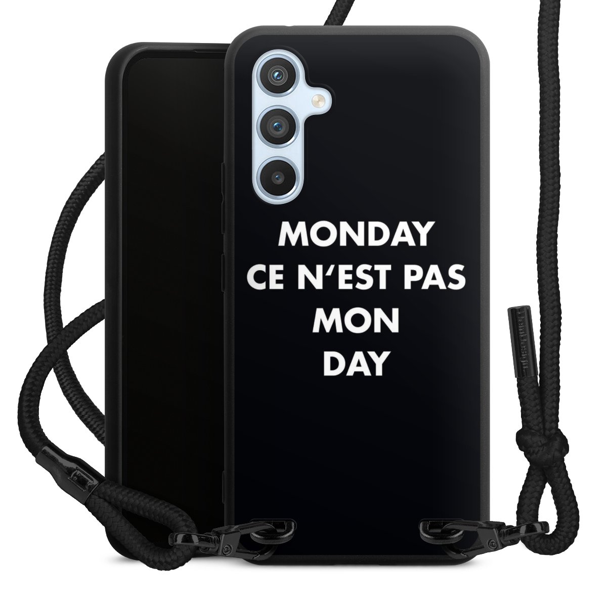 The matt black silicone case is made of flexible TPU (thermoplastic polyurethane) and offers robust protection. The durable, unbreakable material makes the cover flexible and dimensionally stable at the same time. The matte surface makes your design stand out more and is less susceptible to fingerprints and dirt. The stylish trend accessory fits comfortably in the hand and is perfectly complemented by the fabric (polyester) mobile phone strap. The braided fabric strap is approx. 1.70 metres long with a diameter of approx. 0.5 cm. Due to the special knotting technique, the length of the strap can be adjusted by simply pulling it, so that you can adapt it individually to your wishes. The practical case to wear around your neck is available with the fabric strap in black. As a little icing on the cake, we have provided the strap with a chic metal fastener in matt black. The strap is securely fastened to the case with loops made of high-quality genuine leather and press studs. The ends of the fabric strap are covered with metallic end caps and thus protected from fraying.