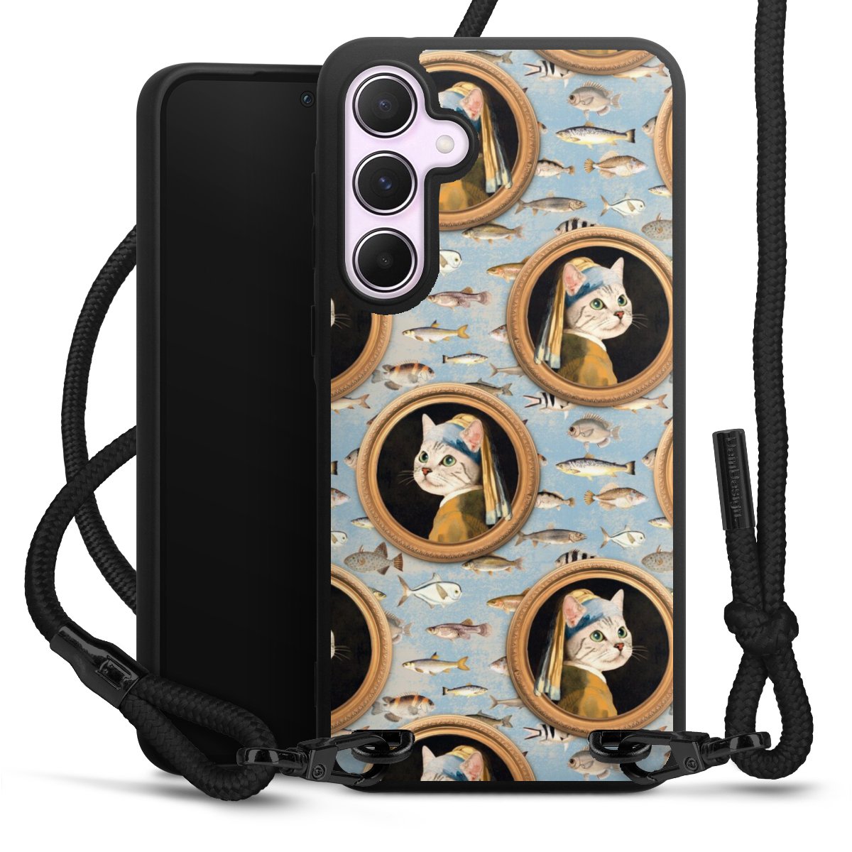 The matt black silicone case is made of flexible TPU (thermoplastic polyurethane) and offers robust protection. The durable, unbreakable material makes the cover flexible and dimensionally stable at the same time. The matte surface makes your design stand out more and is less susceptible to fingerprints and dirt. The stylish trend accessory fits comfortably in the hand and is perfectly complemented by the fabric (polyester) mobile phone strap. The braided fabric strap is approx. 1.70 metres long with a diameter of approx. 0.5 cm. Due to the special knotting technique, the length of the strap can be adjusted by simply pulling it, so that you can adapt it individually to your wishes. The practical case to wear around your neck is available with the fabric strap in black. As a little icing on the cake, we have provided the strap with a chic metal fastener in matt black. The strap is securely fastened to the case with loops made of high-quality genuine leather and press studs. The ends of the fabric strap are covered with metallic end caps and thus protected from fraying.