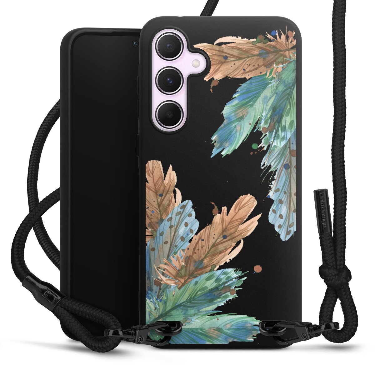 The matt black silicone case is made of flexible TPU (thermoplastic polyurethane) and offers robust protection. The durable, unbreakable material makes the cover flexible and dimensionally stable at the same time. The matte surface makes your design stand out more and is less susceptible to fingerprints and dirt. The stylish trend accessory fits comfortably in the hand and is perfectly complemented by the fabric (polyester) mobile phone strap. The braided fabric strap is approx. 1.70 metres long with a diameter of approx. 0.5 cm. Due to the special knotting technique, the length of the strap can be adjusted by simply pulling it, so that you can adapt it individually to your wishes. The practical case to wear around your neck is available with the fabric strap in black. As a little icing on the cake, we have provided the strap with a chic metal fastener in matt black. The strap is securely fastened to the case with loops made of high-quality genuine leather and press studs. The ends of the fabric strap are covered with metallic end caps and thus protected from fraying.