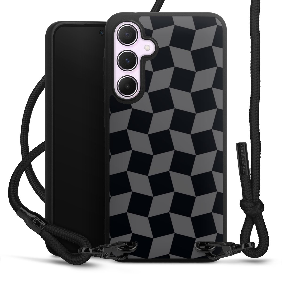 Pure Black: Phone case, fabric strap and metal details in stylish matt black.