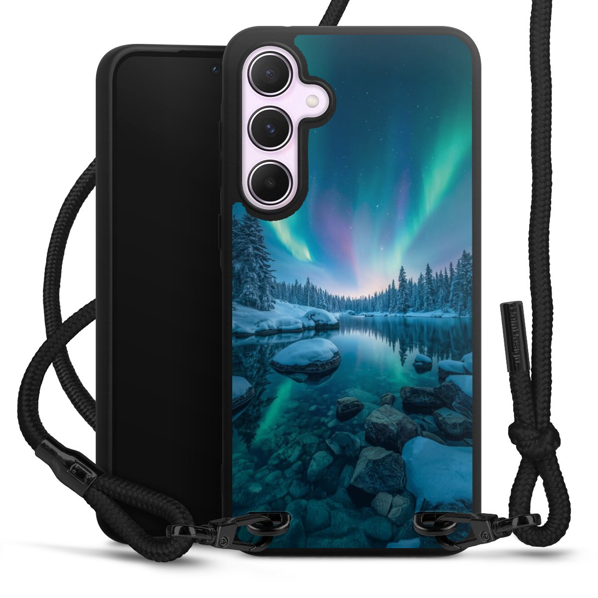 The matt black silicone case is made of flexible TPU (thermoplastic polyurethane) and offers robust protection. The durable, unbreakable material makes the cover flexible and dimensionally stable at the same time. The matte surface makes your design stand out more and is less susceptible to fingerprints and dirt. The stylish trend accessory fits comfortably in the hand and is perfectly complemented by the fabric (polyester) mobile phone strap. The braided fabric strap is approx. 1.70 metres long with a diameter of approx. 0.5 cm. Due to the special knotting technique, the length of the strap can be adjusted by simply pulling it, so that you can adapt it individually to your wishes. The practical case to wear around your neck is available with the fabric strap in black. As a little icing on the cake, we have provided the strap with a chic metal fastener in matt black. The strap is securely fastened to the case with loops made of high-quality genuine leather and press studs. The ends of the fabric strap are covered with metallic end caps and thus protected from fraying.