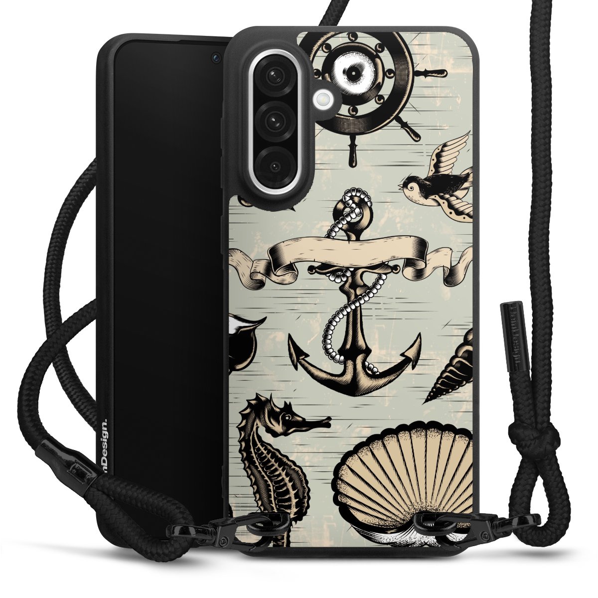 We use the solid direct print process for this phone case, which is why the print area only covers the back and the edge remains unprinted. The case to wear around your neck can be ordered unprinted, fully printed, or partially printed. For your design, either choose one of our exclusive shop motifs or get creative and create your own design, for example with photos and overlays. Design your own personal trend accessory and make an individual statement on the streets!