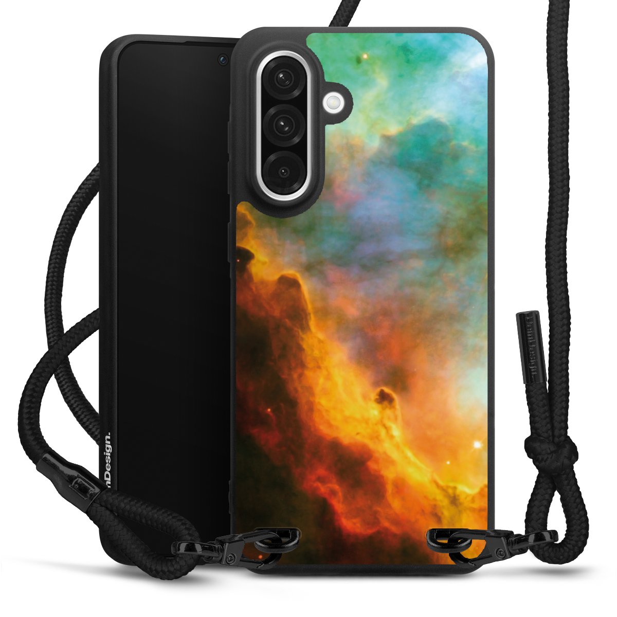 We use the solid direct print process for this phone case, which is why the print area only covers the back and the edge remains unprinted. The case to wear around your neck can be ordered unprinted, fully printed, or partially printed. For your design, either choose one of our exclusive shop motifs or get creative and create your own design, for example with photos and overlays. Design your own personal trend accessory and make an individual statement on the streets!