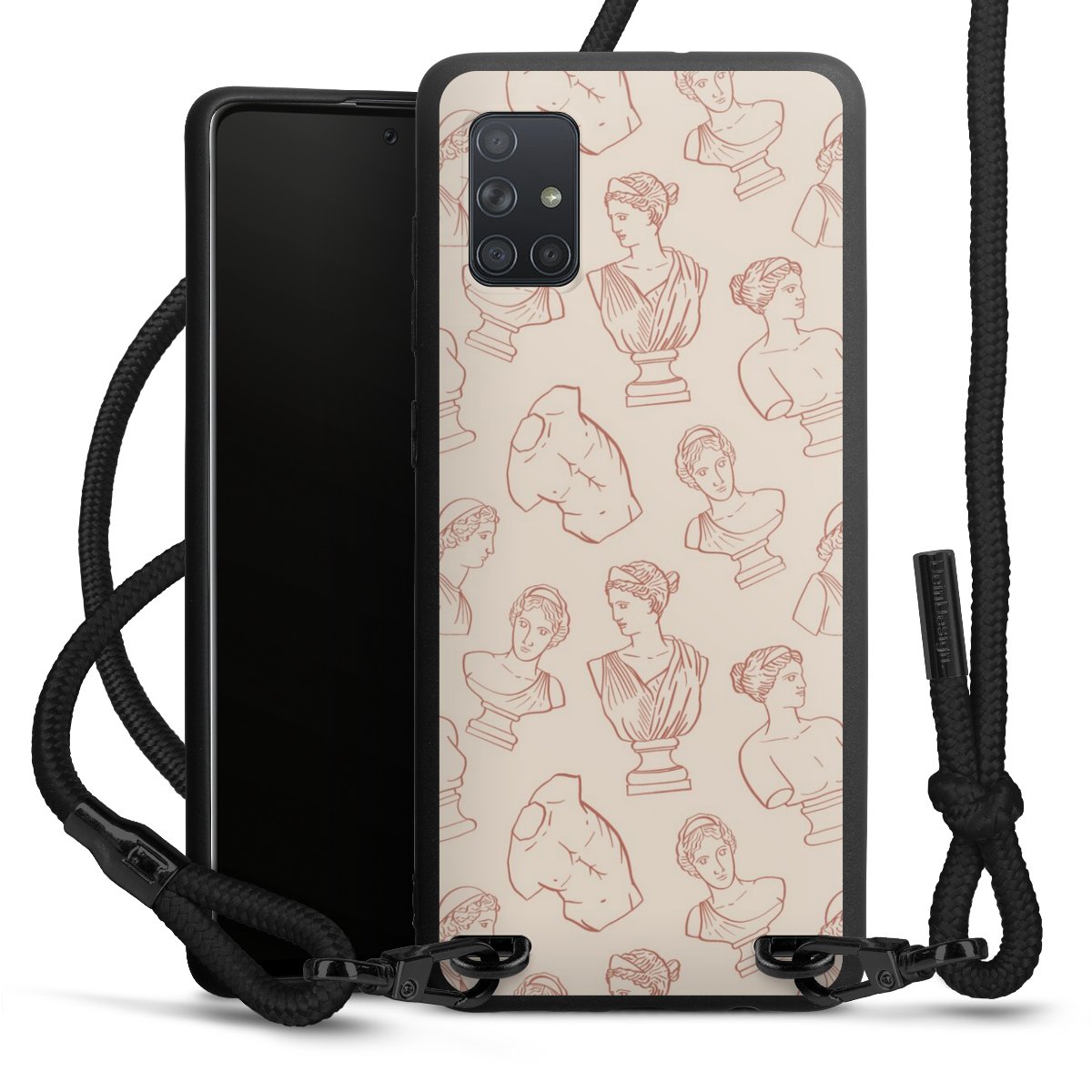 We use the solid direct print process for this phone case, which is why the print area only covers the back and the edge remains unprinted. The case to wear around your neck can be ordered unprinted, fully printed, or partially printed. For your design, either choose one of our exclusive shop motifs or get creative and create your own design, for example with photos and overlays. Design your own personal trend accessory and make an individual statement on the streets!