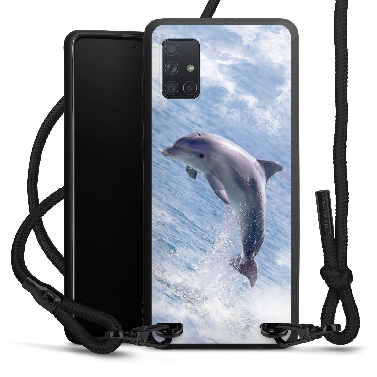 The matt black silicone case is made of flexible TPU (thermoplastic polyurethane) and offers robust protection. The durable, unbreakable material makes the cover flexible and dimensionally stable at the same time. The matte surface makes your design stand out more and is less susceptible to fingerprints and dirt. The stylish trend accessory fits comfortably in the hand and is perfectly complemented by the fabric (polyester) mobile phone strap. The braided fabric strap is approx. 1.70 metres long with a diameter of approx. 0.5 cm. Due to the special knotting technique, the length of the strap can be adjusted by simply pulling it, so that you can adapt it individually to your wishes. The practical case to wear around your neck is available with the fabric strap in black. As a little icing on the cake, we have provided the strap with a chic metal fastener in matt black. The strap is securely fastened to the case with loops made of high-quality genuine leather and press studs. The ends of the fabric strap are covered with metallic end caps and thus protected from fraying.