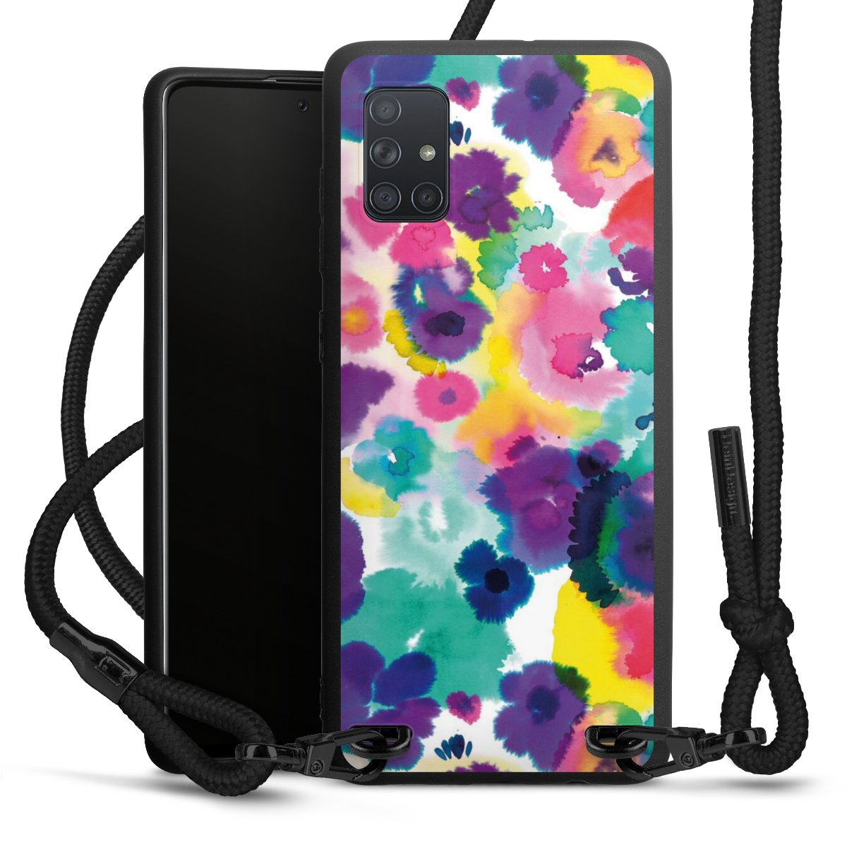 We use the solid direct print process for this phone case, which is why the print area only covers the back and the edge remains unprinted. The case to wear around your neck can be ordered unprinted, fully printed, or partially printed. For your design, either choose one of our exclusive shop motifs or get creative and create your own design, for example with photos and overlays. Design your own personal trend accessory and make an individual statement on the streets!
