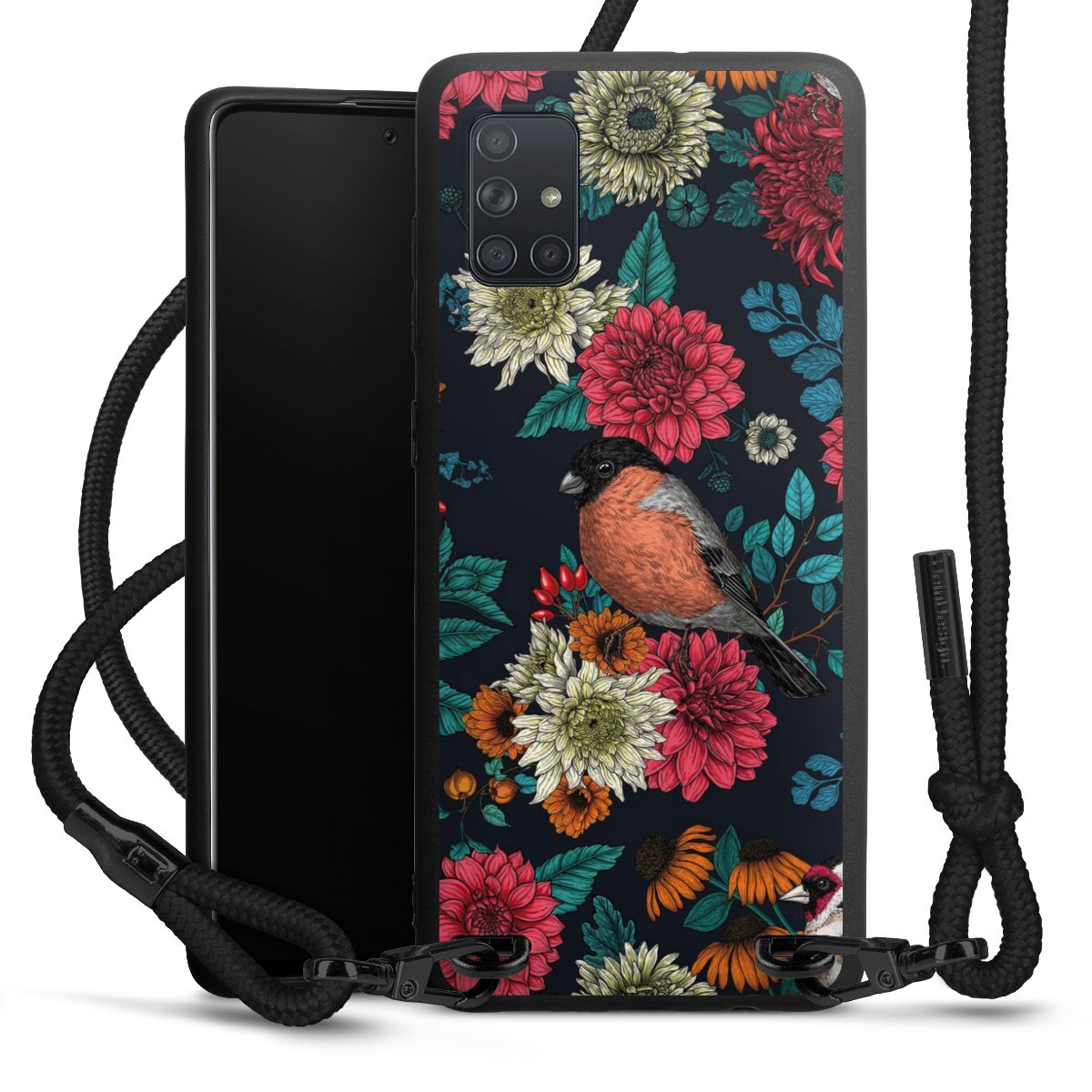 The matt black silicone case is made of flexible TPU (thermoplastic polyurethane) and offers robust protection. The durable, unbreakable material makes the cover flexible and dimensionally stable at the same time. The matte surface makes your design stand out more and is less susceptible to fingerprints and dirt. The stylish trend accessory fits comfortably in the hand and is perfectly complemented by the fabric (polyester) mobile phone strap. The braided fabric strap is approx. 1.70 metres long with a diameter of approx. 0.5 cm. Due to the special knotting technique, the length of the strap can be adjusted by simply pulling it, so that you can adapt it individually to your wishes. The practical case to wear around your neck is available with the fabric strap in black. As a little icing on the cake, we have provided the strap with a chic metal fastener in matt black. The strap is securely fastened to the case with loops made of high-quality genuine leather and press studs. The ends of the fabric strap are covered with metallic end caps and thus protected from fraying.