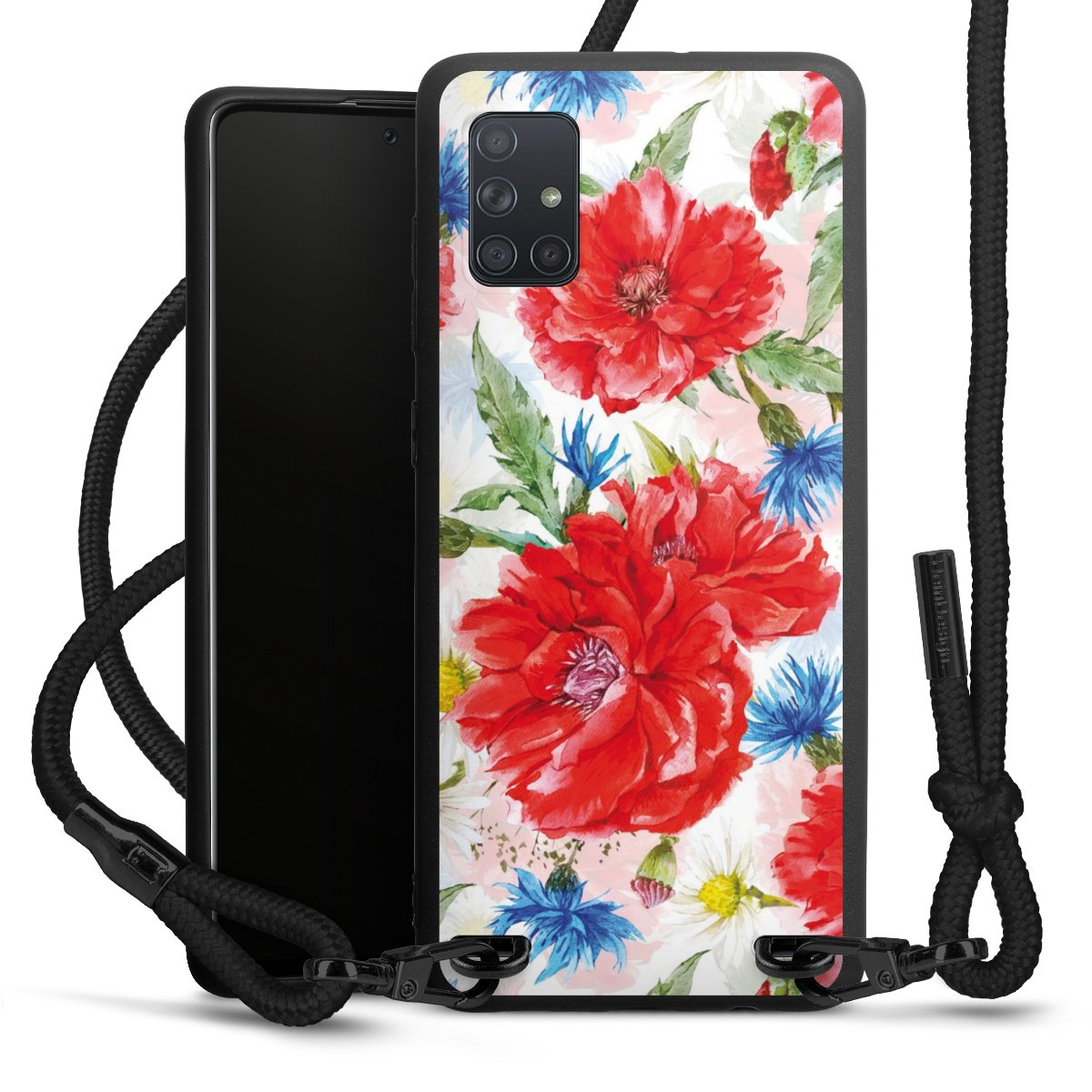 The matt black silicone case is made of flexible TPU (thermoplastic polyurethane) and offers robust protection. The durable, unbreakable material makes the cover flexible and dimensionally stable at the same time. The matte surface makes your design stand out more and is less susceptible to fingerprints and dirt. The stylish trend accessory fits comfortably in the hand and is perfectly complemented by the fabric (polyester) mobile phone strap. The braided fabric strap is approx. 1.70 metres long with a diameter of approx. 0.5 cm. Due to the special knotting technique, the length of the strap can be adjusted by simply pulling it, so that you can adapt it individually to your wishes. The practical case to wear around your neck is available with the fabric strap in black. As a little icing on the cake, we have provided the strap with a chic metal fastener in matt black. The strap is securely fastened to the case with loops made of high-quality genuine leather and press studs. The ends of the fabric strap are covered with metallic end caps and thus protected from fraying.
