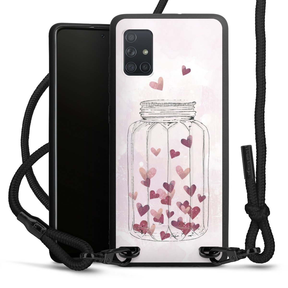 The matt black silicone case is made of flexible TPU (thermoplastic polyurethane) and offers robust protection. The durable, unbreakable material makes the cover flexible and dimensionally stable at the same time. The matte surface makes your design stand out more and is less susceptible to fingerprints and dirt. The stylish trend accessory fits comfortably in the hand and is perfectly complemented by the fabric (polyester) mobile phone strap. The braided fabric strap is approx. 1.70 metres long with a diameter of approx. 0.5 cm. Due to the special knotting technique, the length of the strap can be adjusted by simply pulling it, so that you can adapt it individually to your wishes. The practical case to wear around your neck is available with the fabric strap in black. As a little icing on the cake, we have provided the strap with a chic metal fastener in matt black. The strap is securely fastened to the case with loops made of high-quality genuine leather and press studs. The ends of the fabric strap are covered with metallic end caps and thus protected from fraying.
