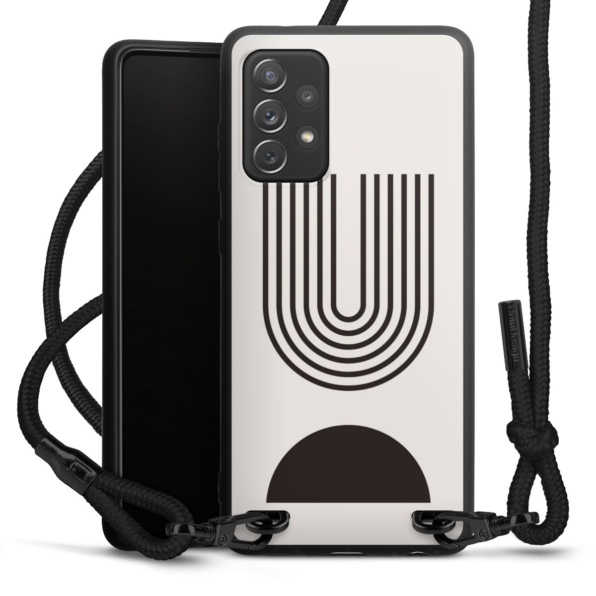 The matt black silicone case is made of flexible TPU (thermoplastic polyurethane) and offers robust protection. The durable, unbreakable material makes the cover flexible and dimensionally stable at the same time. The matte surface makes your design stand out more and is less susceptible to fingerprints and dirt. The stylish trend accessory fits comfortably in the hand and is perfectly complemented by the fabric (polyester) mobile phone strap. The braided fabric strap is approx. 1.70 metres long with a diameter of approx. 0.5 cm. Due to the special knotting technique, the length of the strap can be adjusted by simply pulling it, so that you can adapt it individually to your wishes. The practical case to wear around your neck is available with the fabric strap in black. As a little icing on the cake, we have provided the strap with a chic metal fastener in matt black. The strap is securely fastened to the case with loops made of high-quality genuine leather and press studs. The ends of the fabric strap are covered with metallic end caps and thus protected from fraying.