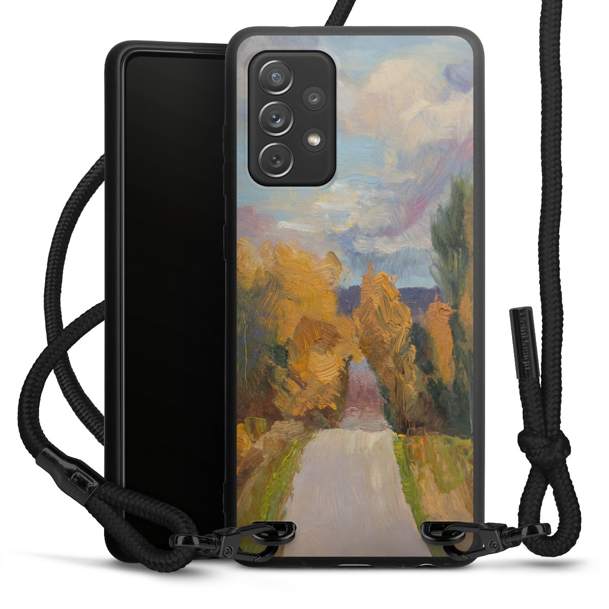 We use the solid direct print process for this phone case, which is why the print area only covers the back and the edge remains unprinted. The case to wear around your neck can be ordered unprinted, fully printed, or partially printed. For your design, either choose one of our exclusive shop motifs or get creative and create your own design, for example with photos and overlays. Design your own personal trend accessory and make an individual statement on the streets!