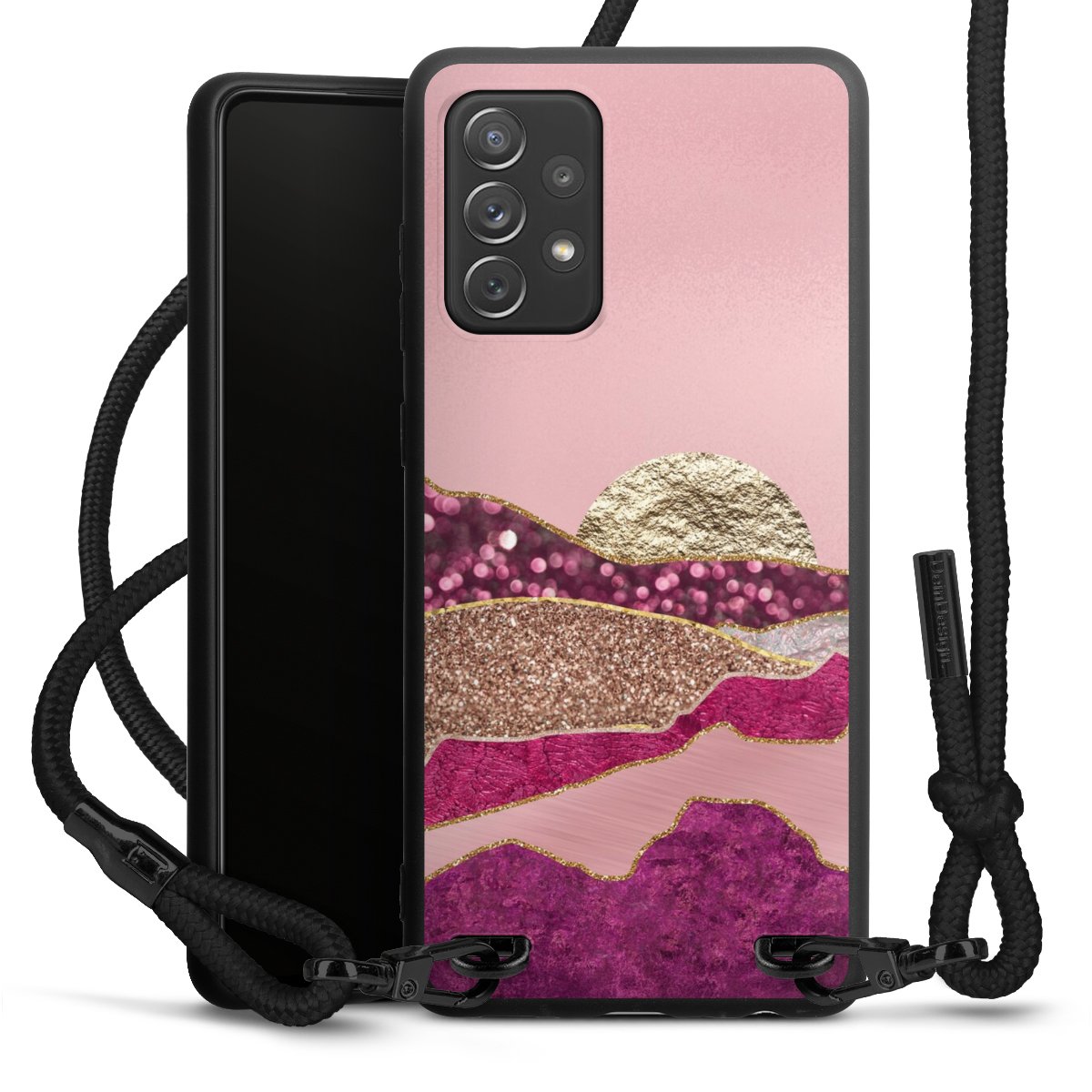 We use the solid direct print process for this phone case, which is why the print area only covers the back and the edge remains unprinted. The case to wear around your neck can be ordered unprinted, fully printed, or partially printed. For your design, either choose one of our exclusive shop motifs or get creative and create your own design, for example with photos and overlays. Design your own personal trend accessory and make an individual statement on the streets!