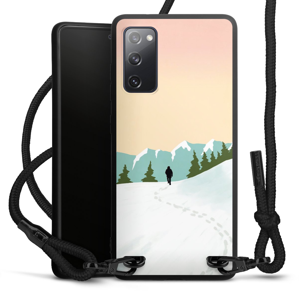 We use the solid direct print process for this phone case, which is why the print area only covers the back and the edge remains unprinted. The case to wear around your neck can be ordered unprinted, fully printed, or partially printed. For your design, either choose one of our exclusive shop motifs or get creative and create your own design, for example with photos and overlays. Design your own personal trend accessory and make an individual statement on the streets!