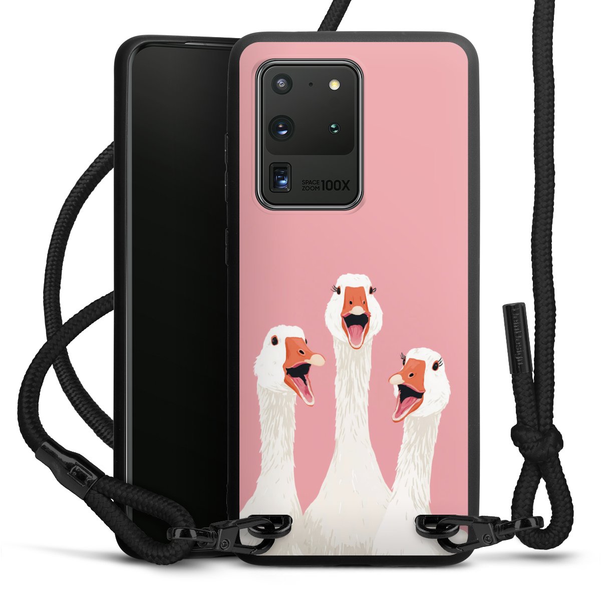 We use the solid direct print process for this phone case, which is why the print area only covers the back and the edge remains unprinted. The case to wear around your neck can be ordered unprinted, fully printed, or partially printed. For your design, either choose one of our exclusive shop motifs or get creative and create your own design, for example with photos and overlays. Design your own personal trend accessory and make an individual statement on the streets!