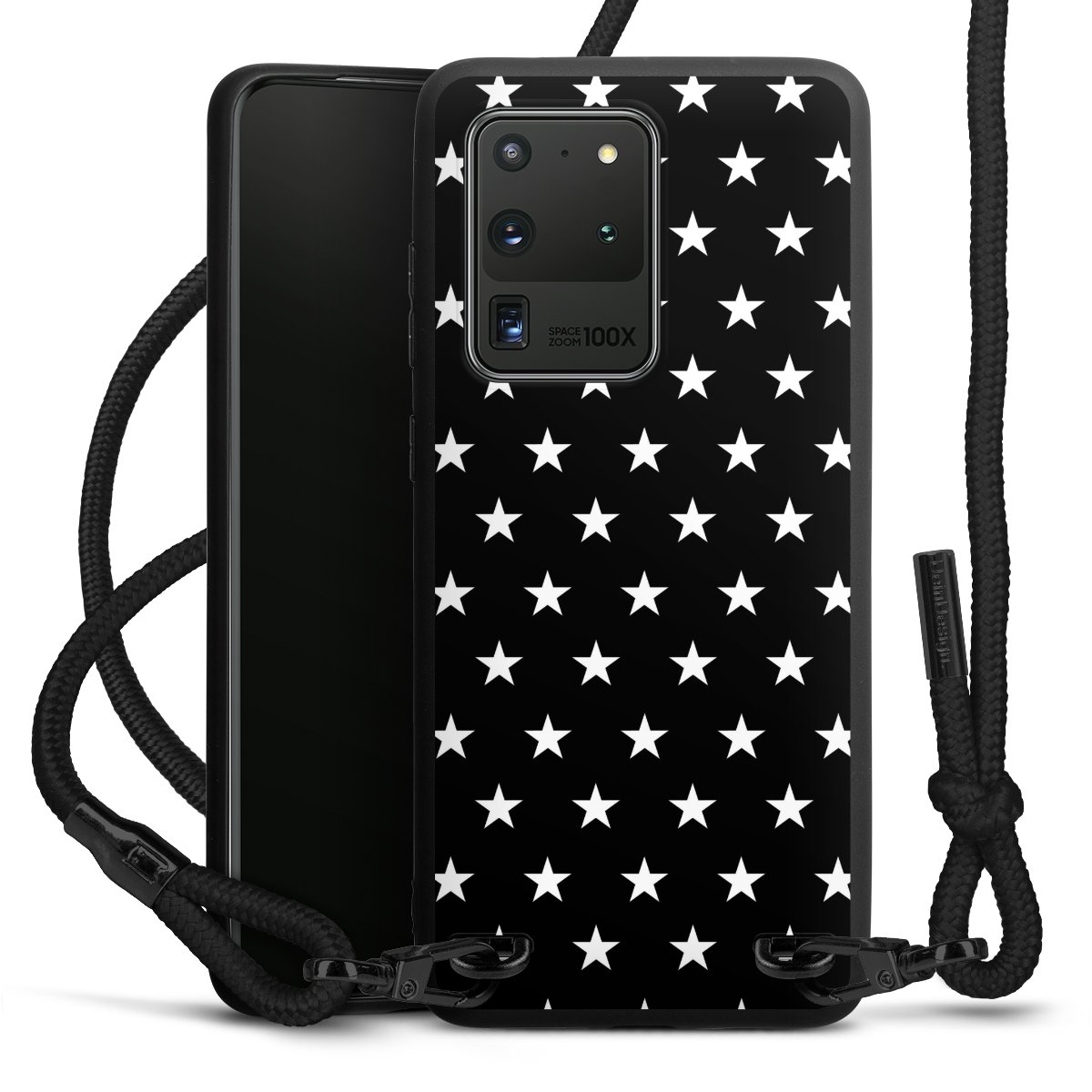 The matt black silicone case is made of flexible TPU (thermoplastic polyurethane) and offers robust protection. The durable, unbreakable material makes the cover flexible and dimensionally stable at the same time. The matte surface makes your design stand out more and is less susceptible to fingerprints and dirt. The stylish trend accessory fits comfortably in the hand and is perfectly complemented by the fabric (polyester) mobile phone strap. The braided fabric strap is approx. 1.70 metres long with a diameter of approx. 0.5 cm. Due to the special knotting technique, the length of the strap can be adjusted by simply pulling it, so that you can adapt it individually to your wishes. The practical case to wear around your neck is available with the fabric strap in black. As a little icing on the cake, we have provided the strap with a chic metal fastener in matt black. The strap is securely fastened to the case with loops made of high-quality genuine leather and press studs. The ends of the fabric strap are covered with metallic end caps and thus protected from fraying.